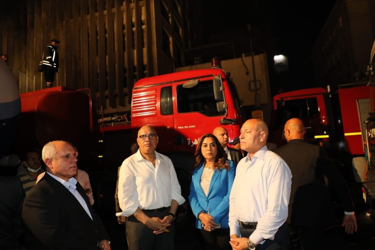 وزيرة التنمية المحلية تتابع مع محافظ القاهرة عمليات السيطرة على حريق سنترال رمسيس