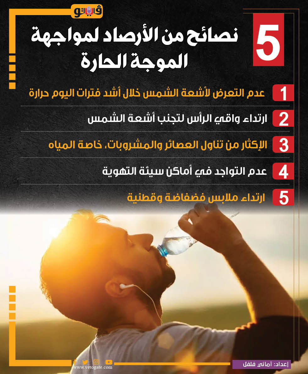 5 نصائح من الأرصاد لمواجهة الموجة الحارة (إنفوجراف)