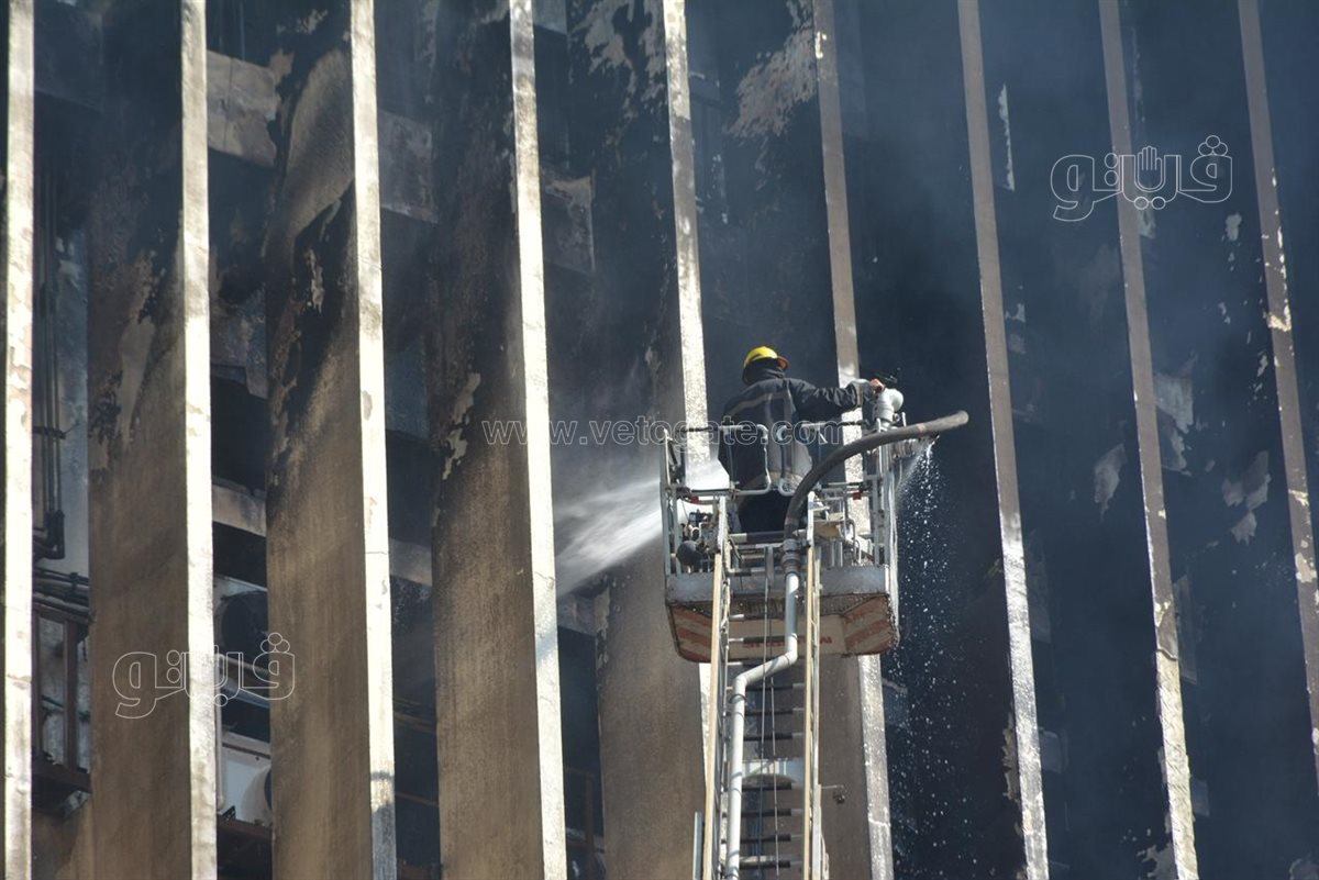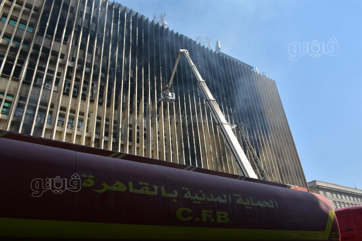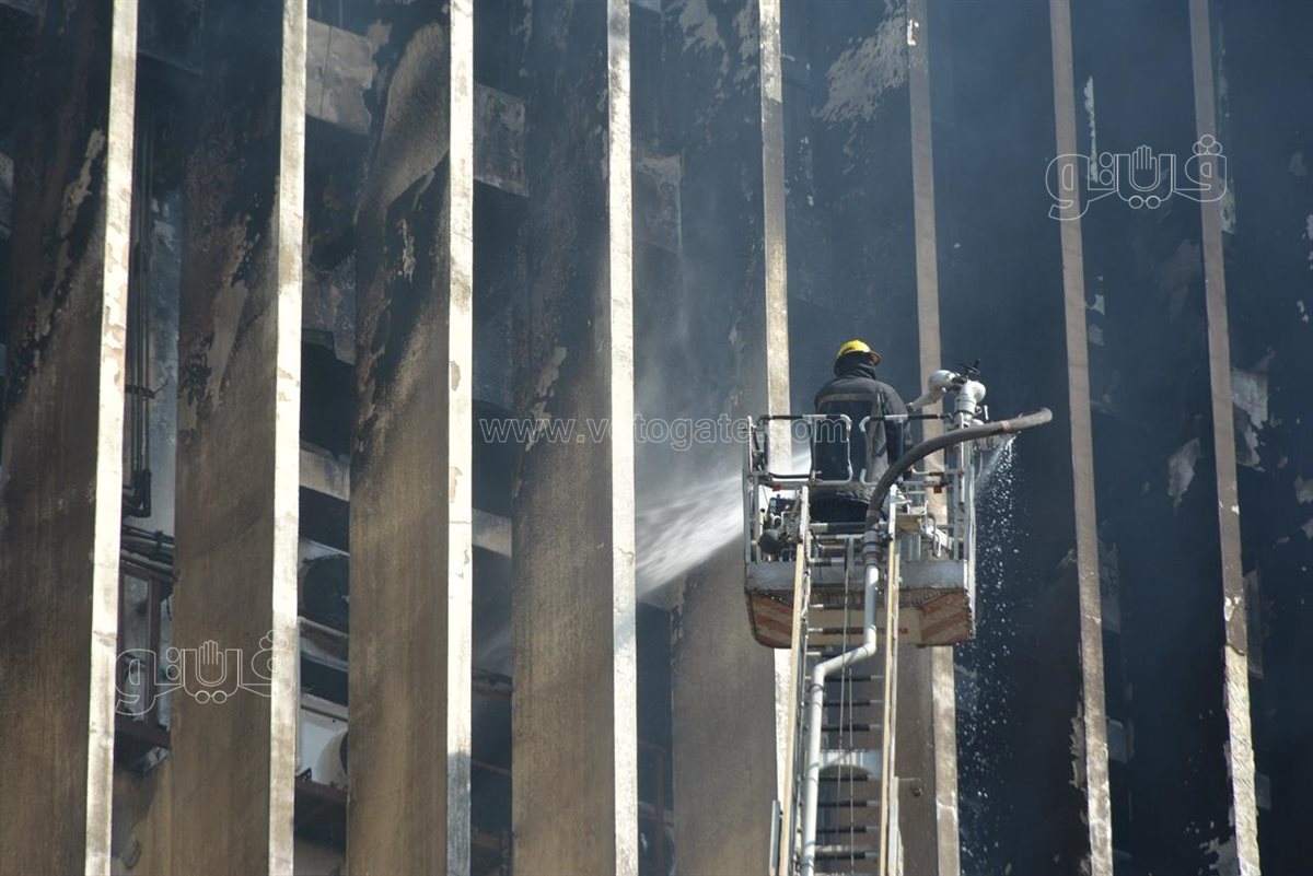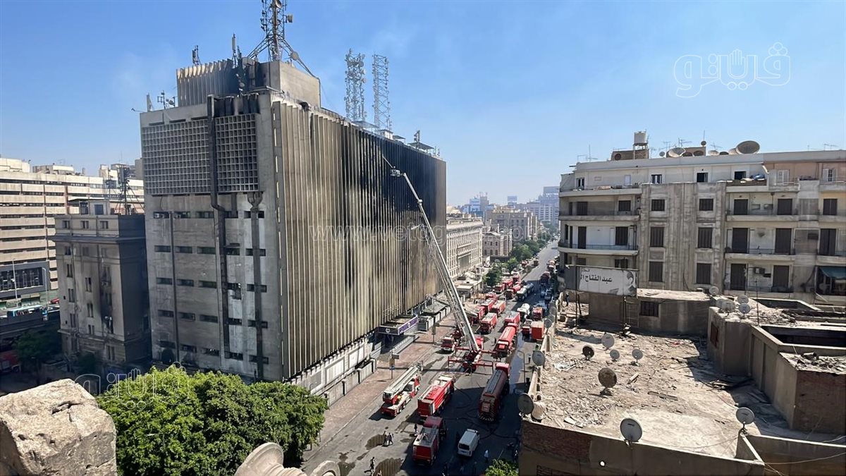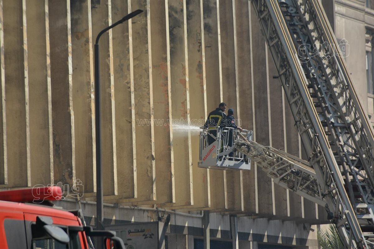 استمرار أعمال التبريد لحريق سنترال رمسيس وغلق نزلات أكتوبر (فيديو وصور)