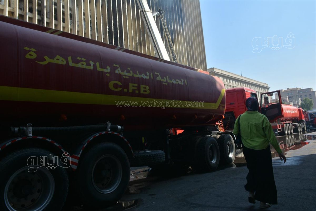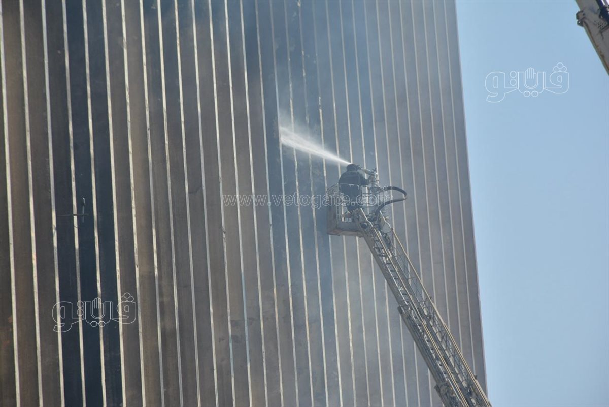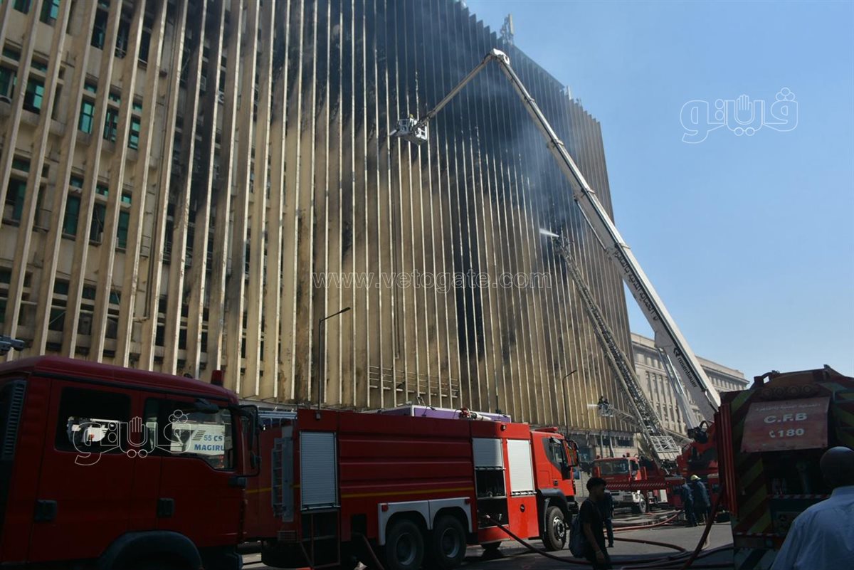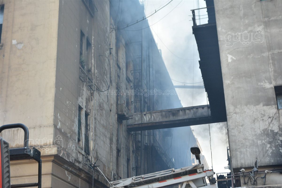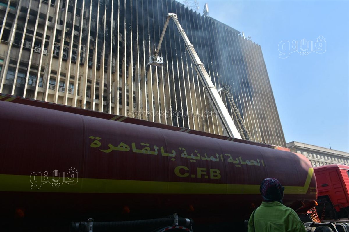 استمرار أعمال التبريد لحريق سنترال رمسيس وغلق نزلات أكتوبر (فيديو وصور)