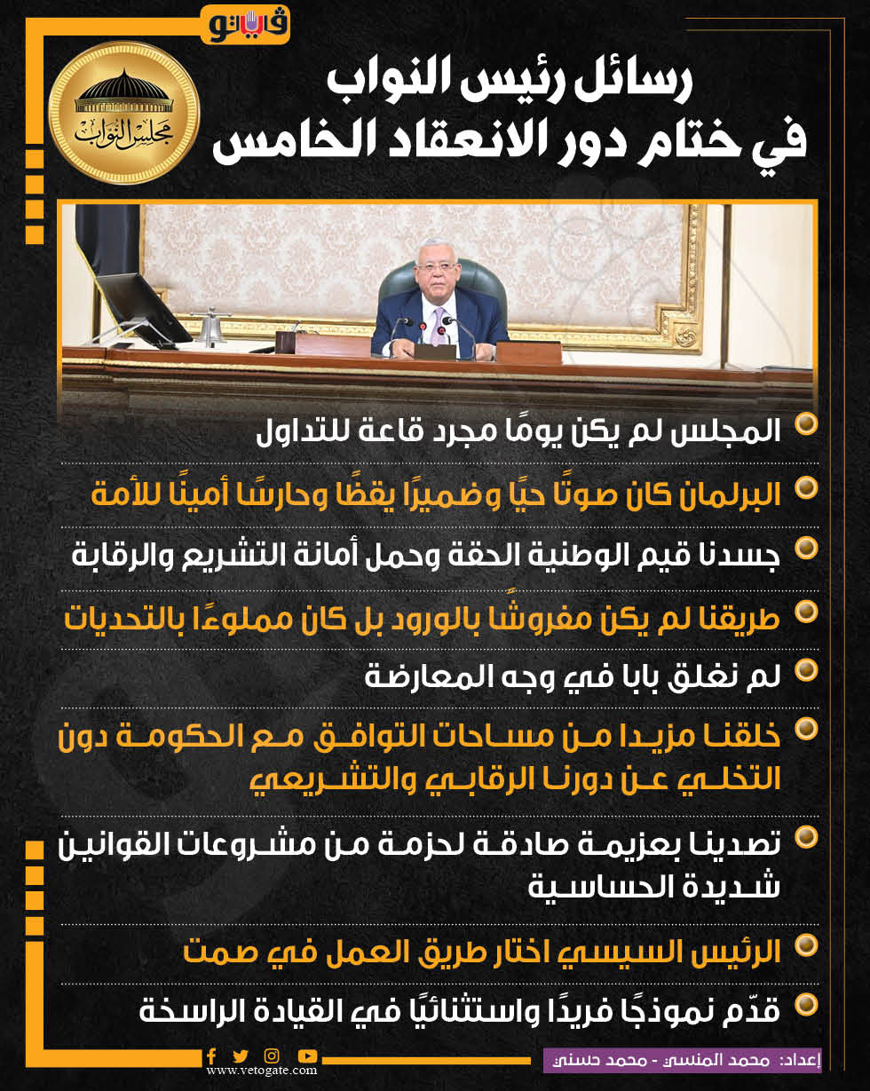 رسائل رئيس النواب في ختام دور الانعقاد الخامس (إنفوجراف)