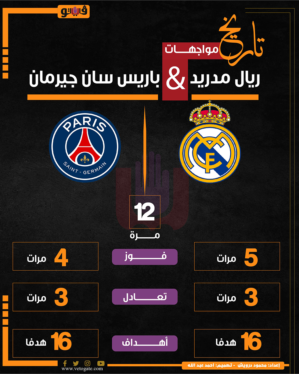 تاريخ مواجهات ريال مدريد ضد باريس سان جيرمان (إنفوجراف)