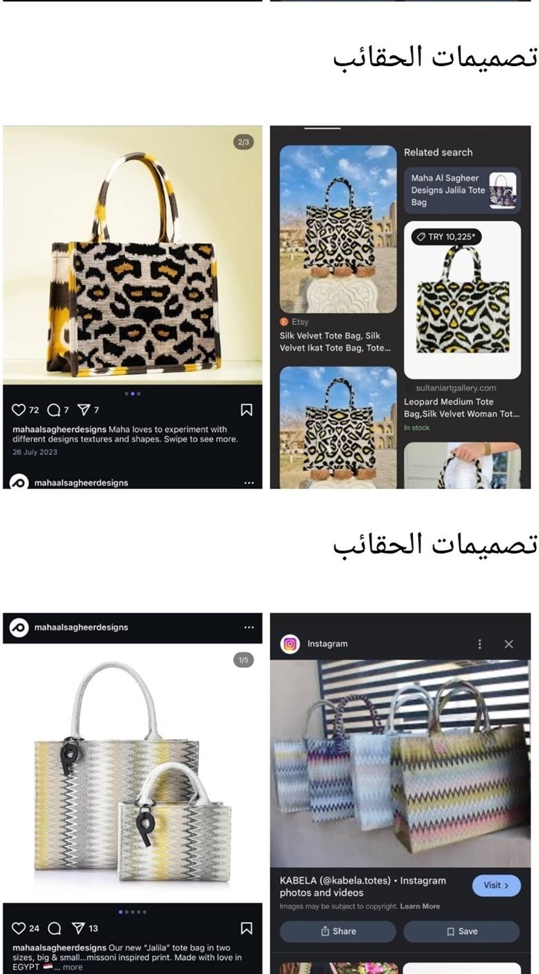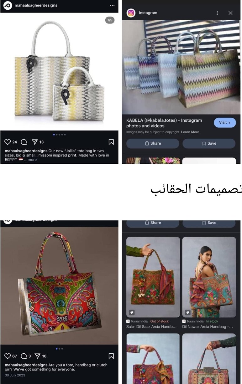تُواجه الإعلامية مها الصغير مؤخرًا موجة من الاتهامات بالنسخ والسرقة، طالت هذه المرة تصميمات الحقائب الخاصة بعلامتها التجارية، وذلك بعد يومين من اتهامها بسرقة أعمال فنية لتشكيليين أوروبيين عُرضت في برنامج الإعلامية منى الشاذلي.
