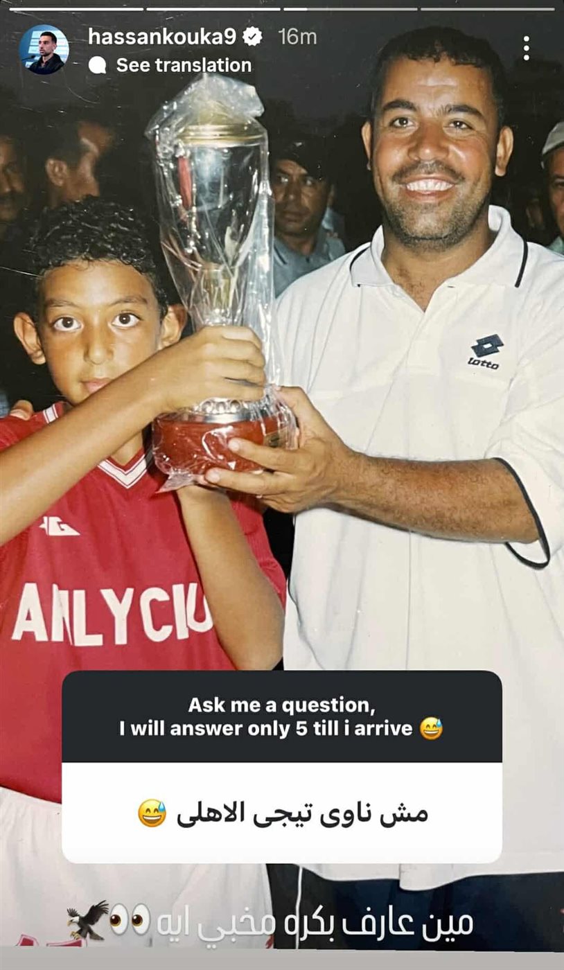 نشر أحمد حسن كوكا مهاجم منتخب مصر، ستوري عبر حسابه الشخصي على إنستجرام، يرد من خلالها على سؤال حول إمكانية انتقاله للنادي الأهلي خلال الفترة المقبلة.