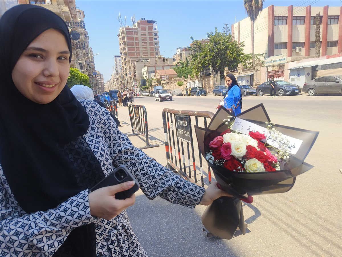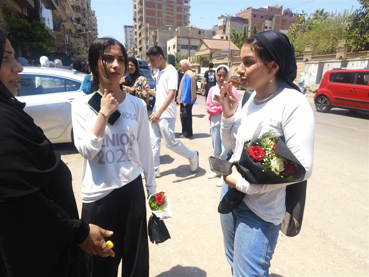 وقف أولياء أمور طلاب وطالبات الثانوية العامة في الدقهلية حاملين الورود والبلالين في انتظار خروج أبنائهم في آخر أيام ماراثون الامتحانات.