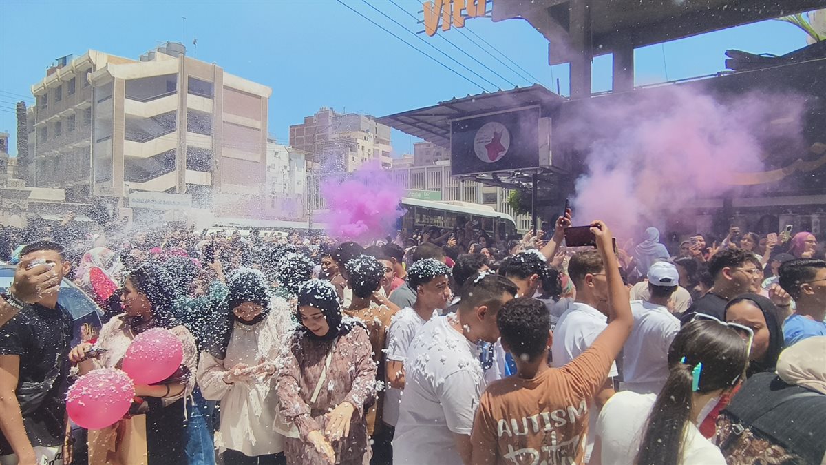 البنات بالشماريخ والأولاد بثلج الأفراح، طلاب الثانوية العامة بالدقهلية يحتفلون بانتهاء الامتحانات (فيديو وصور)