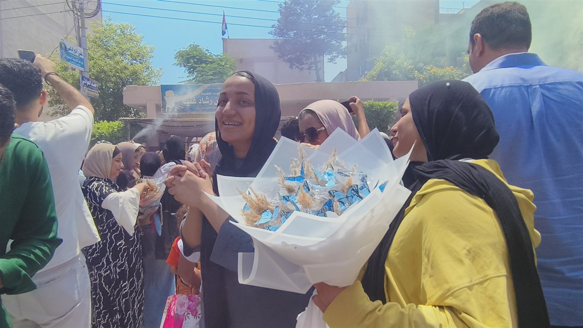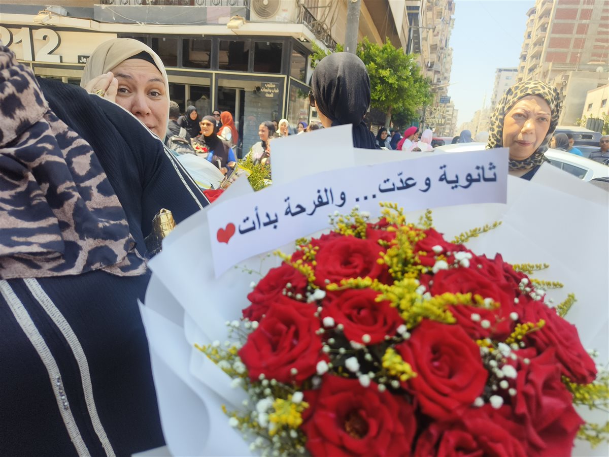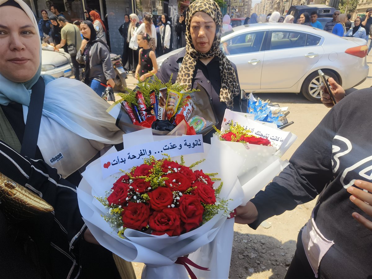 وكان أولياء أمور طلاب وطالبات الثانوية العامة في الدقهلية ينتظرون أبناءهم حاملين الورود والبلالين في انتظار خروجهم من آخر الامتحانات.