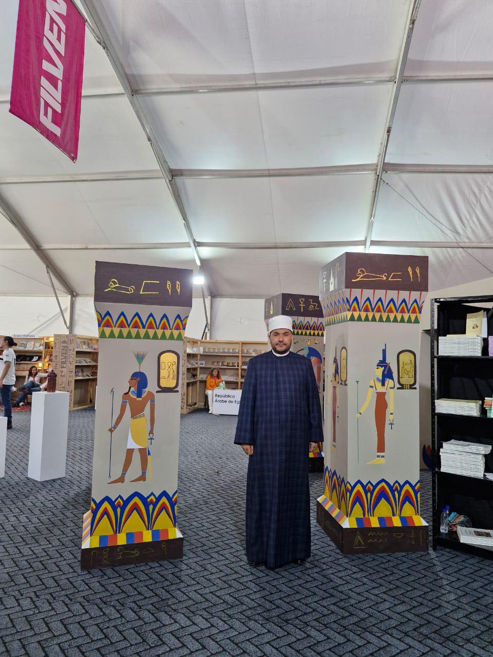 وفي هذا السياق، قدَّم الشيخ سمير فوزي عبد الله سلامة، مبعوث وزارة الأوقاف المصرية للمركز الإسلامي الفنزويلي، ومُمثِّل المجلس الأعلى للشئون الإسلامية، عرضًا تعريفيًّا ببعض الإصدارات، وذلك في إطار التعريف بالإسلام وأخلاقه، والقيم التي يدعو إليها، وفي مقدمتها التعايش والسلام ونبذ العنف، مؤكدًا دور مصر ووزارة الأوقاف الحضاري والثقافي في بناء جسور التواصل بين الشعوب، ومشيدًا بدور المجلس الأعلى للشئون الإسلامية في مجال الترجمة ونشر الفكر الإسلامي المعتدل. كما وجَّه فضيلته تحية تقدير إلى القائمين على تنظيم المعرض، ووزارة الثقافة المصرية، والهيئة العامة للكتاب، على الإعداد المتميز لهذا الحدث الدولي.