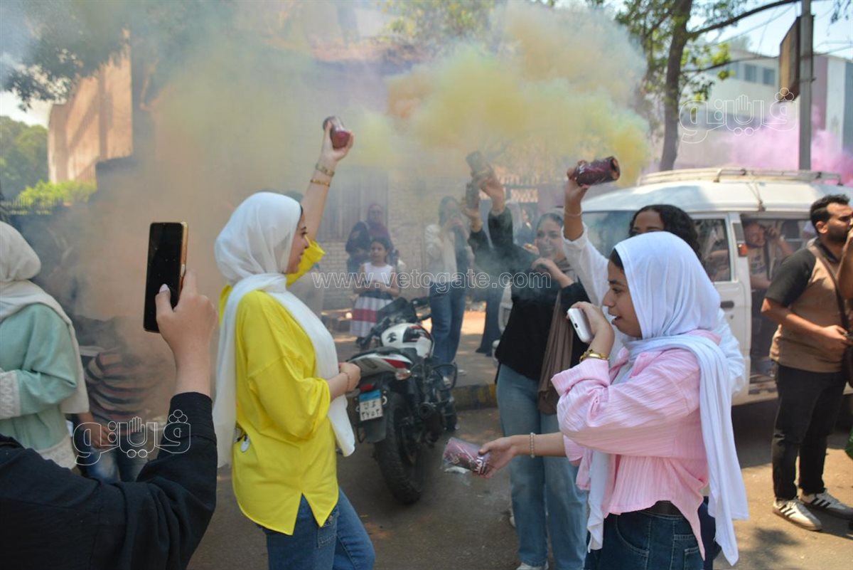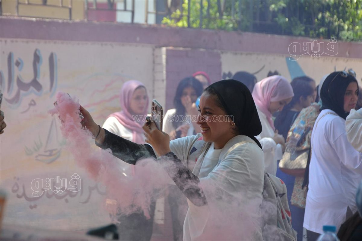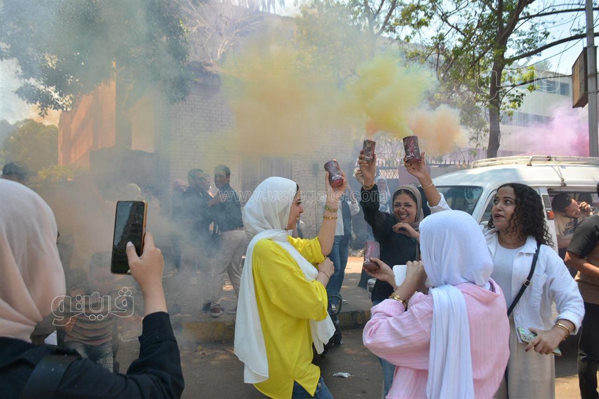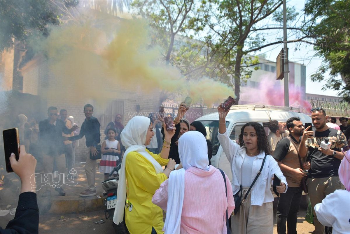 وشهد محيط لجان امتحانات الثانوية العامة في القاهرة والجيزة، احتفالات صاخبة من طلاب الثانوية في آخر أيام الامتحانات فرحا ببدء إجازة نهاية العام.