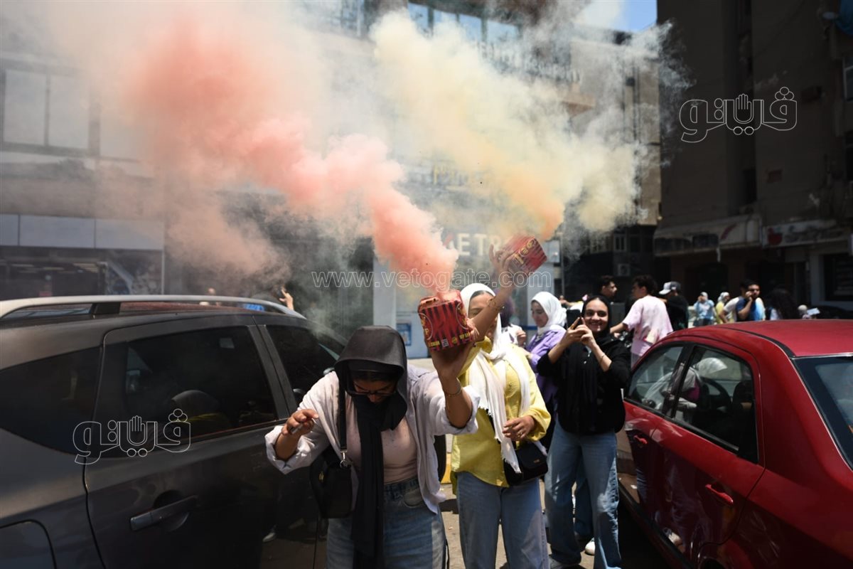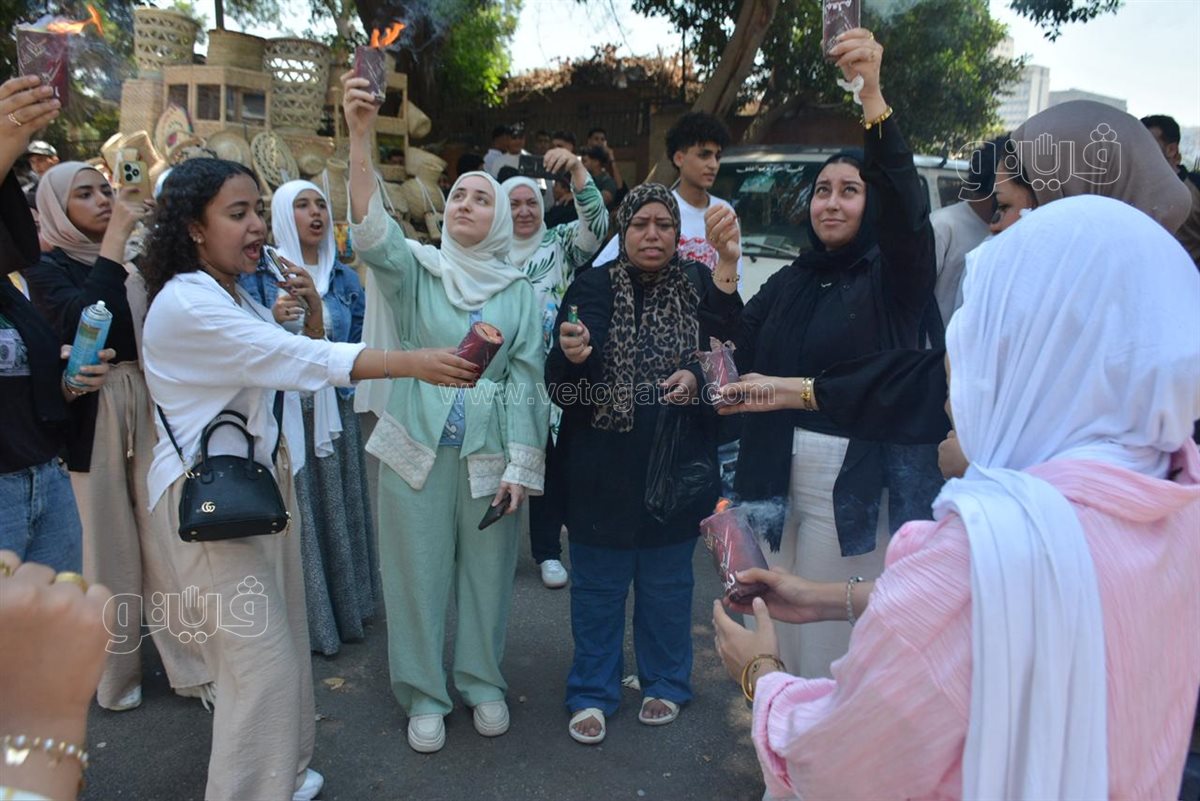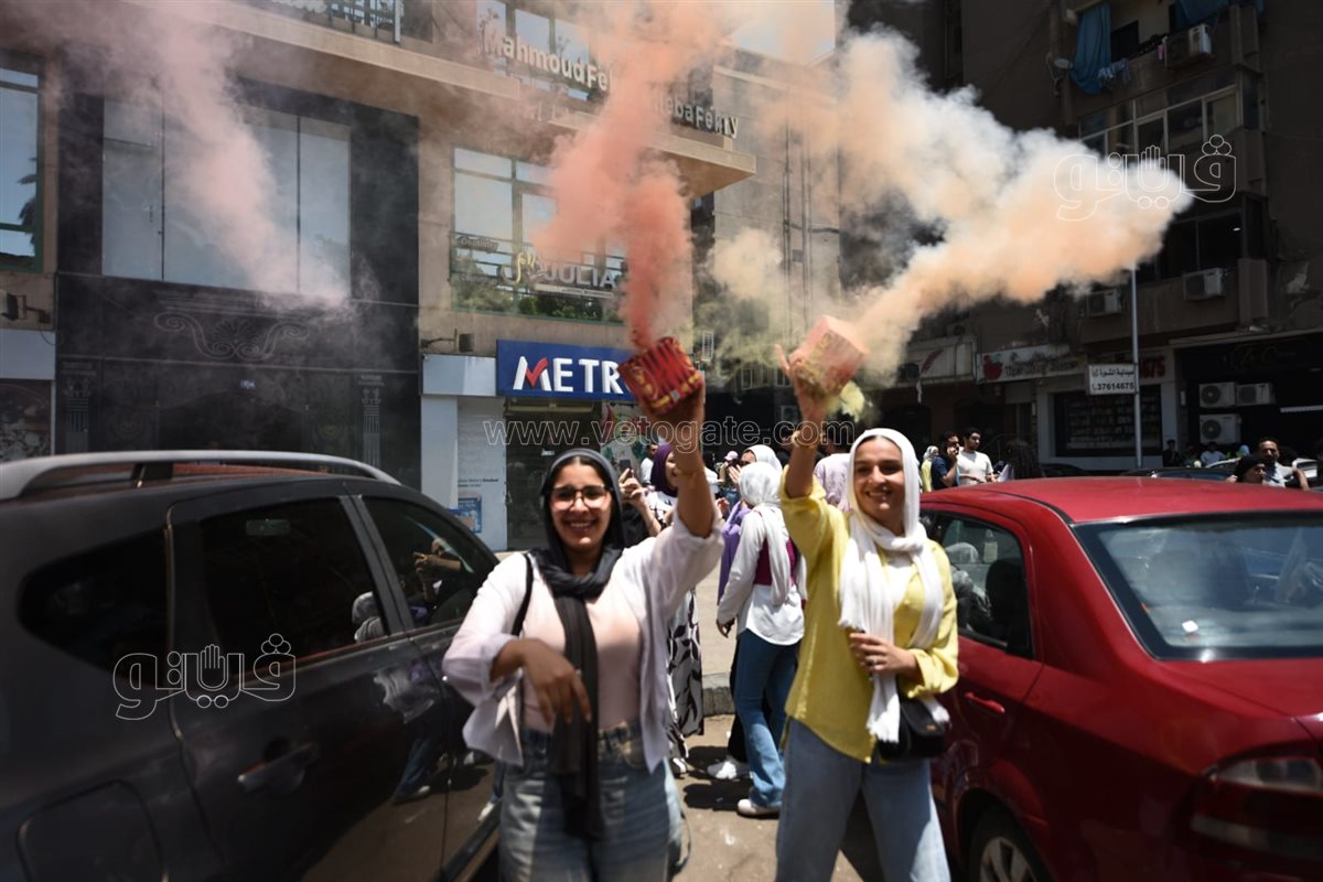 وأطلق طلاب الثانوية العامة أمام لجان مدرستي جمال عبد الناصر في الدقي، وباب النصر في باب الشعرية، الصواريخ والألعاب النارية، مع الرقص والطبل والغناء والتقاط صور السيلفي.