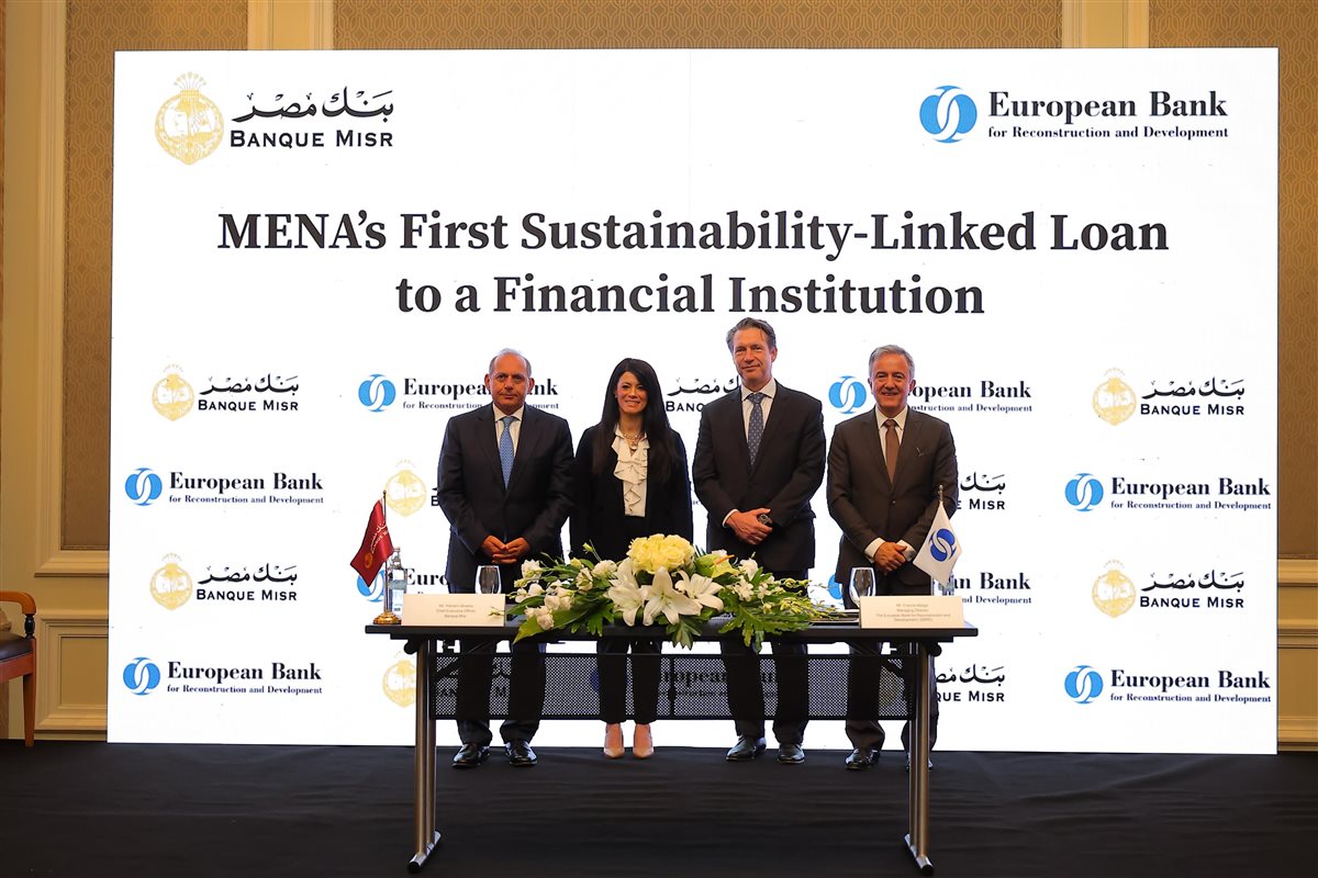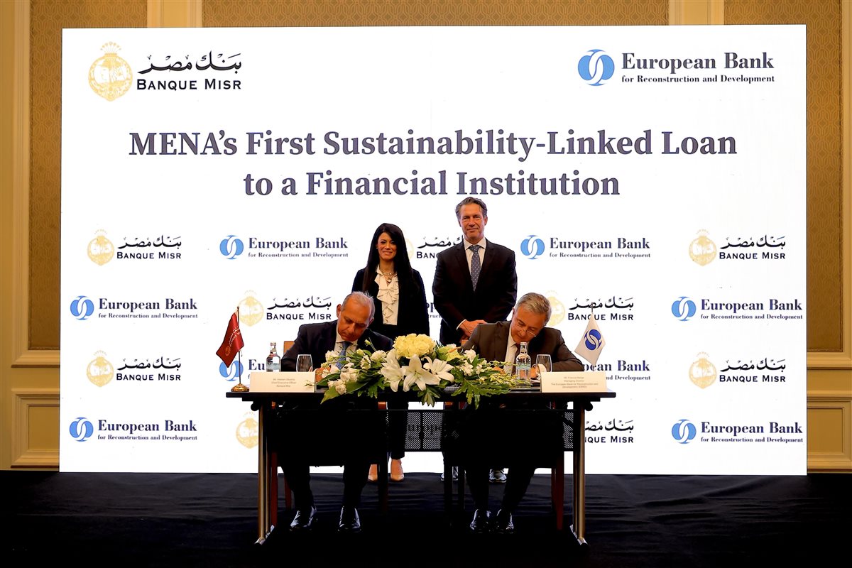 شهدت الدكتورة رانيا المشاط وزيرة التخطيط والتنمية الاقتصادية والتعاون الدولي، قيام بنك مصر بالتوقيع على أول قرض من نوعه في منطقة الشرق الأوسط وشمال إفريقيا مرتبط بالاستدامة لمؤسسة مالية، وذلك بقرض تمويلي قدره 100 مليون دولار أمريكي، مقدم بالكامل من البنك الأوروبي لإعادة الإعمار والتنمية، وبمشاركة بنك أبو ظبي الأول كمستشار بيئي ومستشار الاستدامة للصفقة، ويأتي ذلك في إطار جهود بنك مصر المستمرة لتعزيز التنمية المستدامة في مصر، واتساقًا مع رؤية الدولة نحو اقتصاد شامل وأخضر، وقد تم التوقيع يوم الأربعاء الموافق 9 يوليو 2025، وقام بالتوقيع عن بنك مصر هشام عكاشة – الرئيس التنفيذي، وفرانسيس ماليج، المدير العام ورئيس مجموعة مؤسسات التمويل في البنك الأوروبي لإعادة الإعمار والتنمية، وذلك بحضور قيادات المؤسستين.