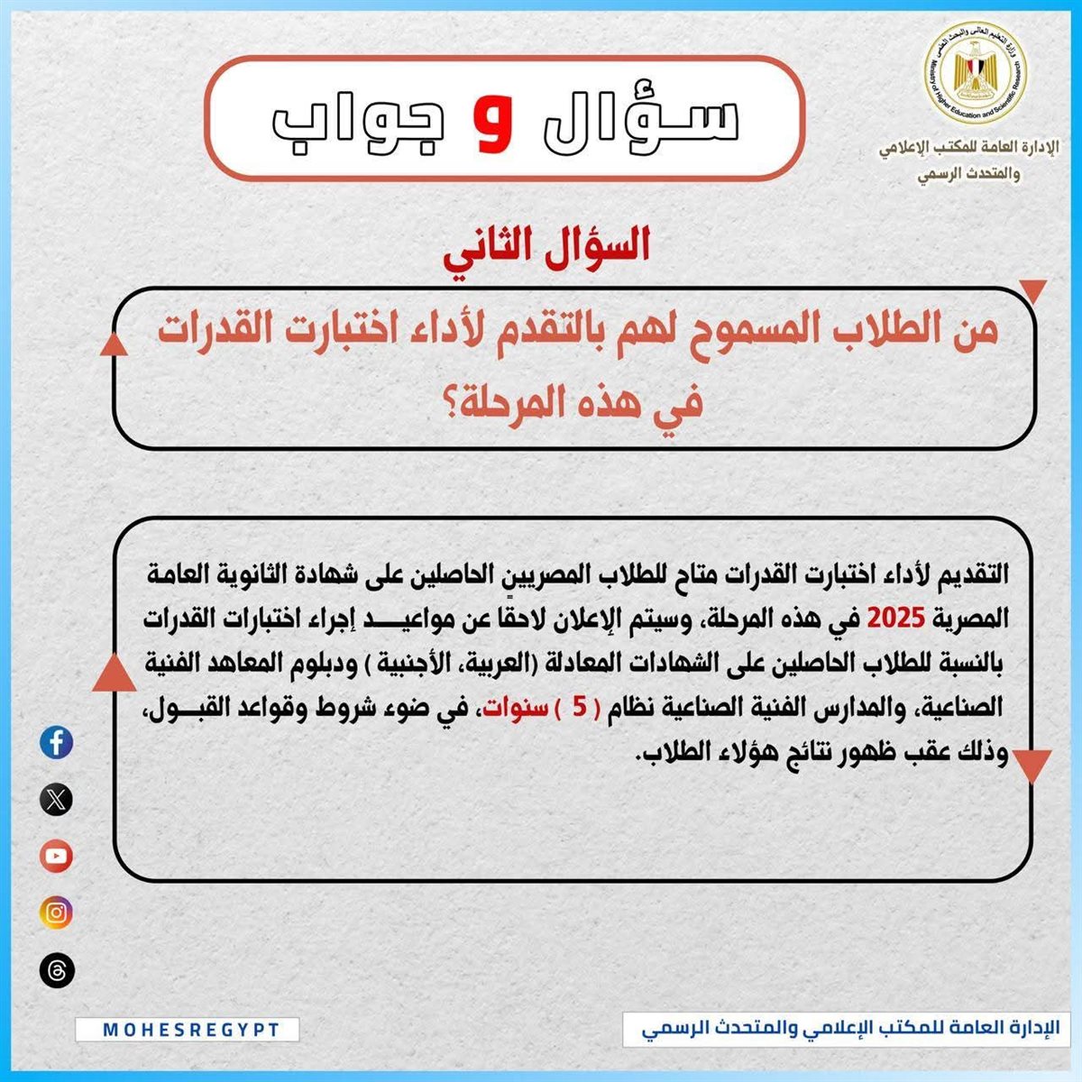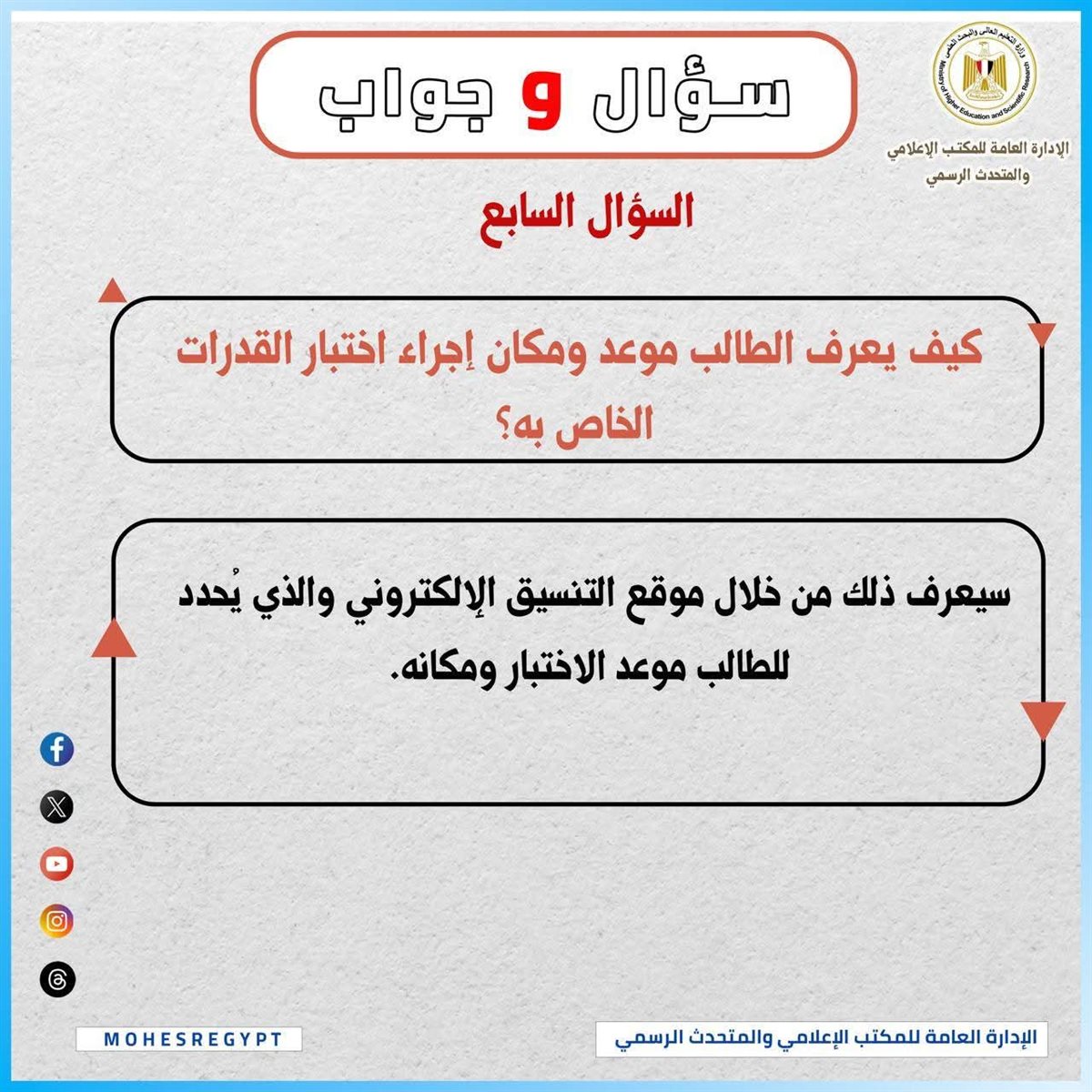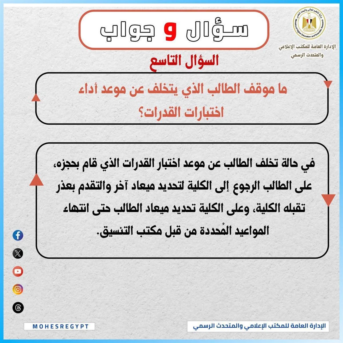 ونشرت وزارة التعليم العالي 13 سؤالا عن اختبارات القدرات لطلاب الثانوية العامة.