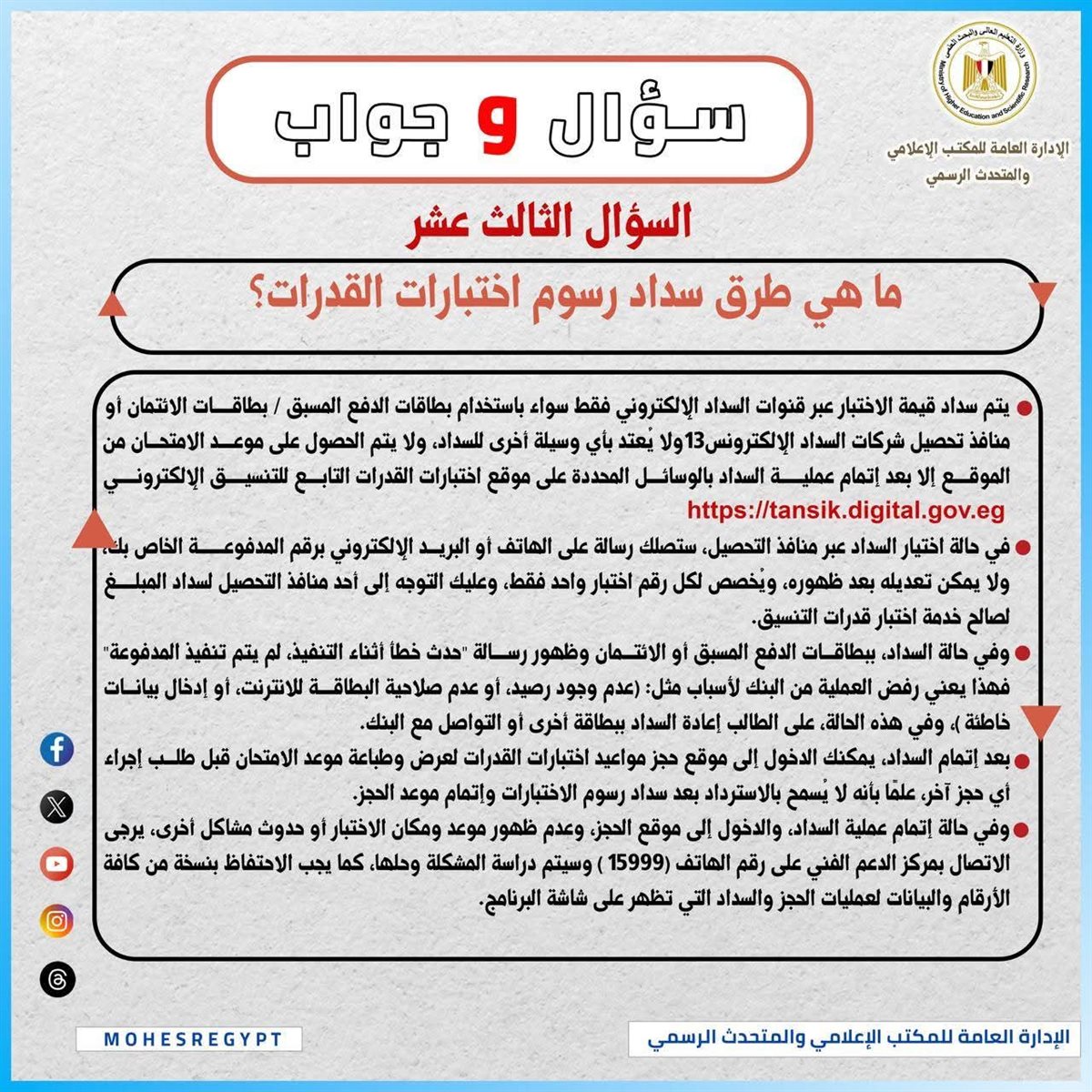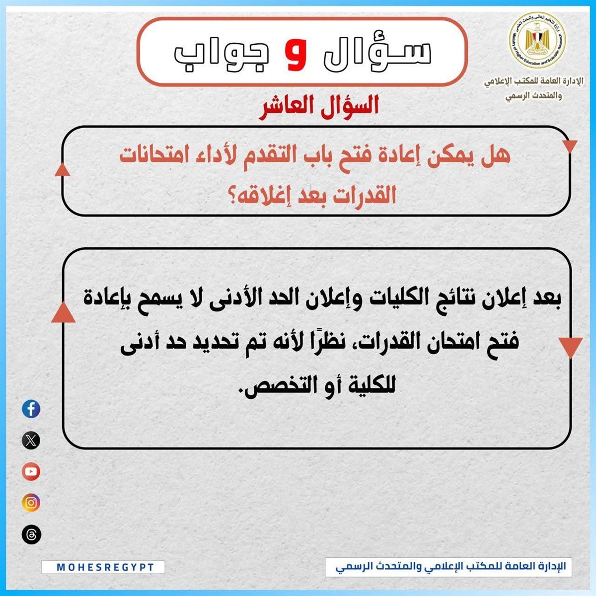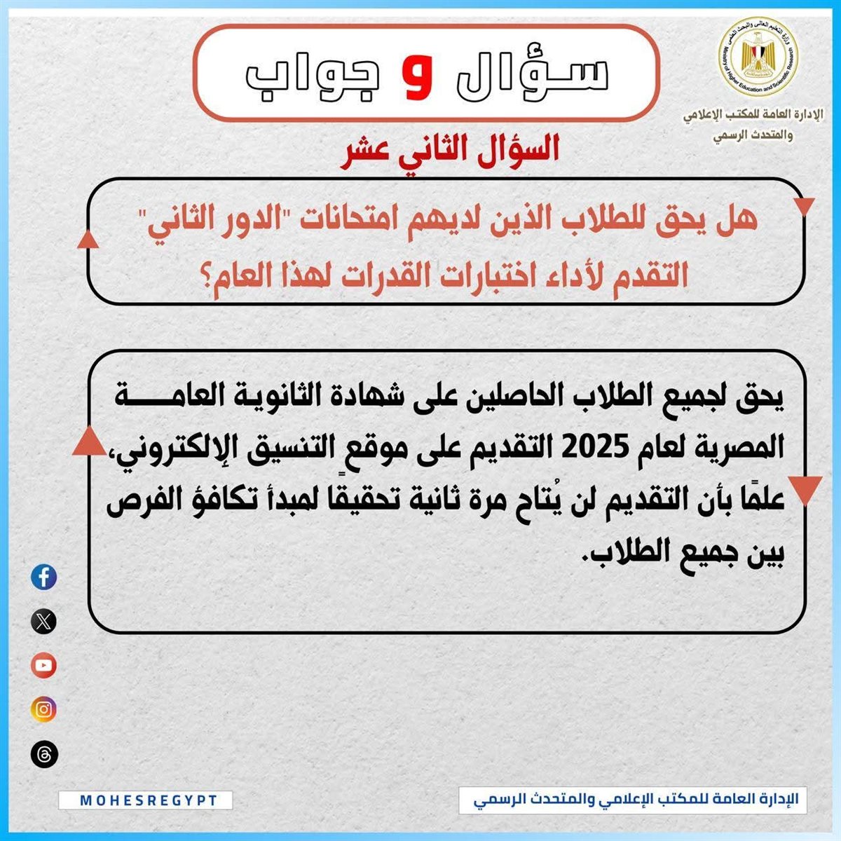 ونشرت وزارة التعليم العالي 13 سؤالا عن اختبارات القدرات لطلاب الثانوية العامة.