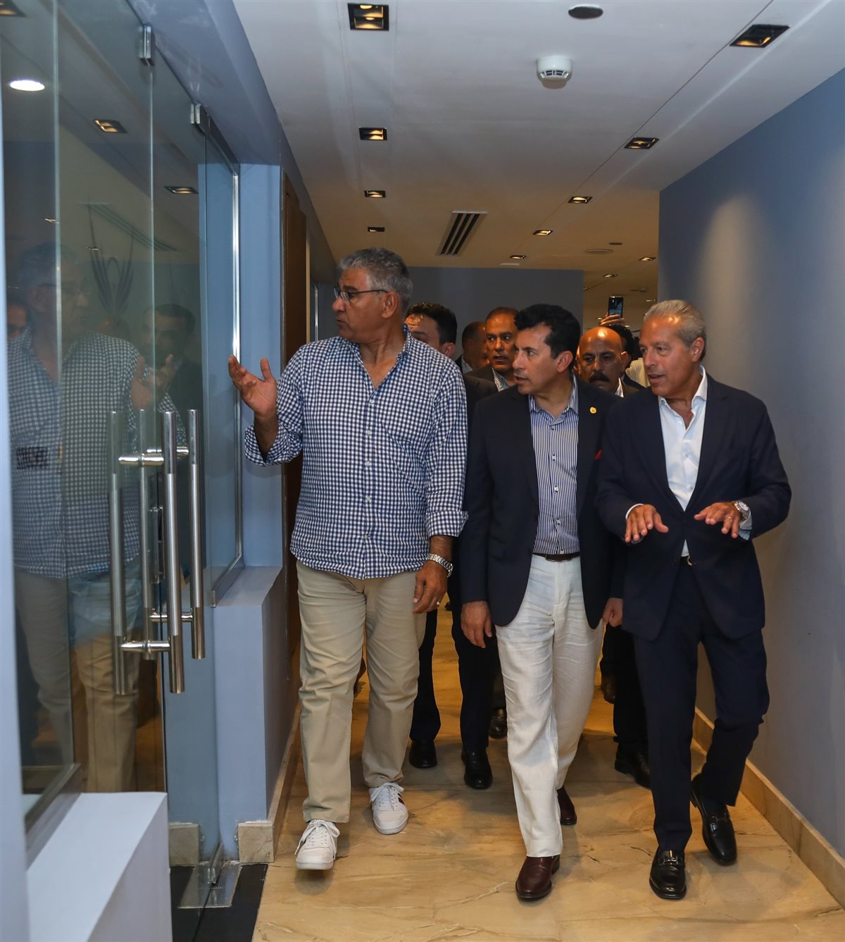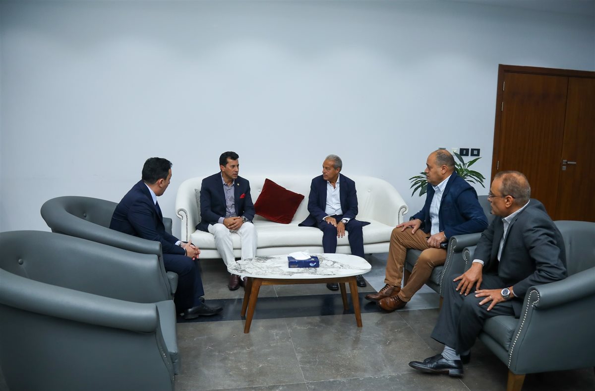 كان في استقبال الوزير لدى زيارته خالد الدرندلي نائب رئيس الاتحاد المصري لكرة القدم والدكتور مصطفى أبو زهرة عضو مجلس الإدارة والدكتور مصطفى عزام المدير التنفيذي للاتحاد والكابتن علاء نبيل المدير الفني للاتحاد والجهاز الفني بقيادة الكابتن أحمد الكاس.