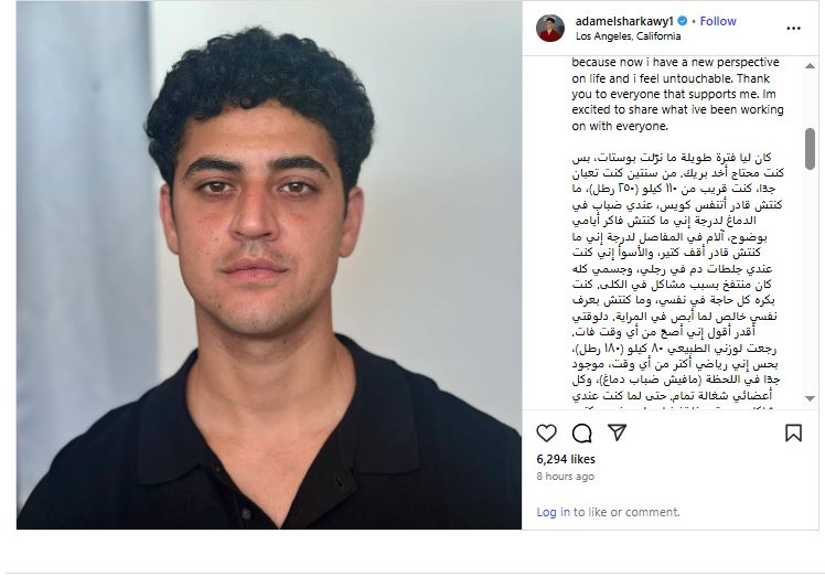 وقال عبر حسابه على "إنستجرام": "كنت محتاج آخد بريك. من سنتين، كنت تعبان جدًّا، وزني وصل لـ110 كيلوجرامات (250 رطلًا)، ما كنتش قادر أتنفس، وضباب في الدماغ كان بيخليني أنسى أيامي، ومش قادر أقف بسبب آلام المفاصل".