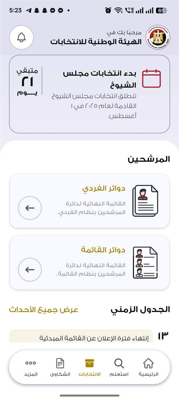 الاطلاع على الجدول الزمني للانتخابات بمراحله المختلفة.