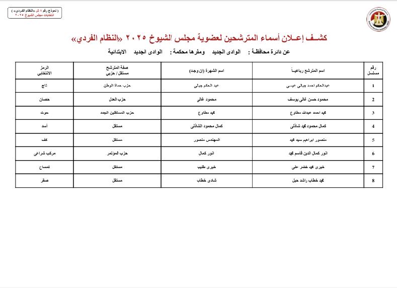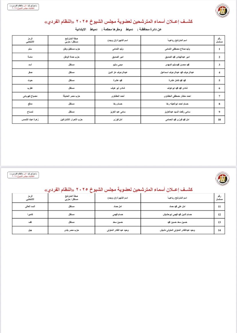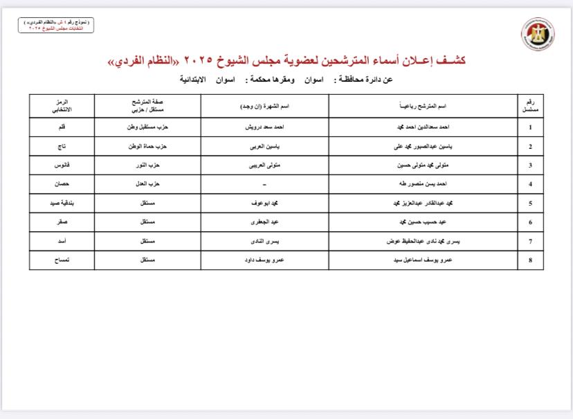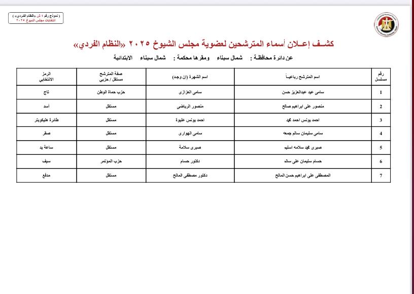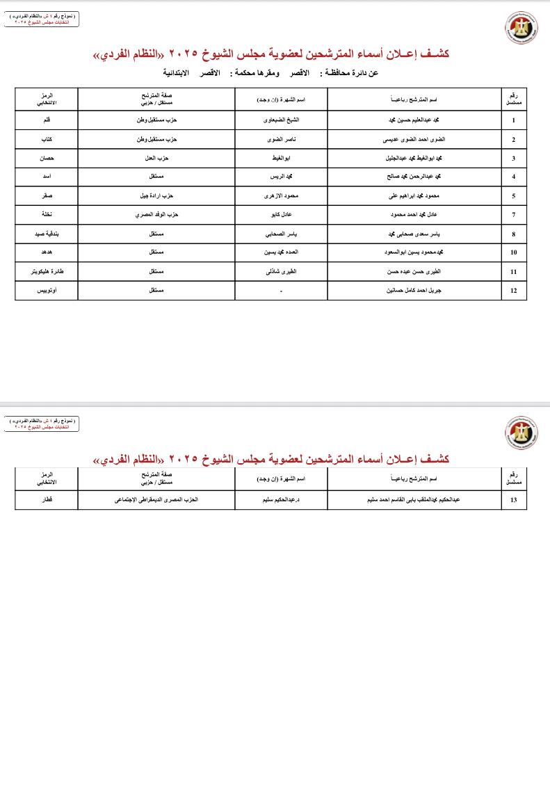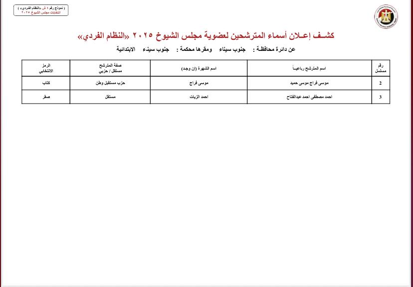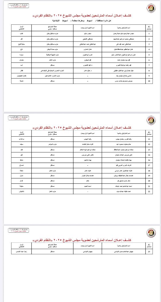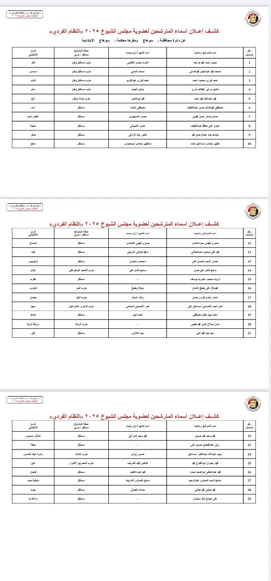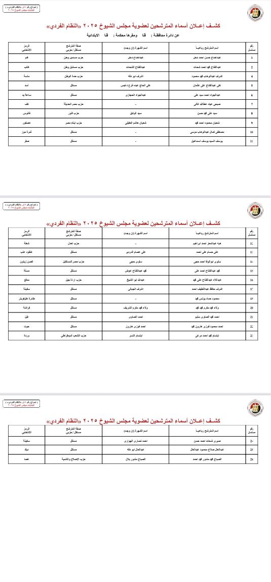 ننشر أسماء المرشحين لمجلس الشيوخ بمحافظات الصعيد والوجه البحري