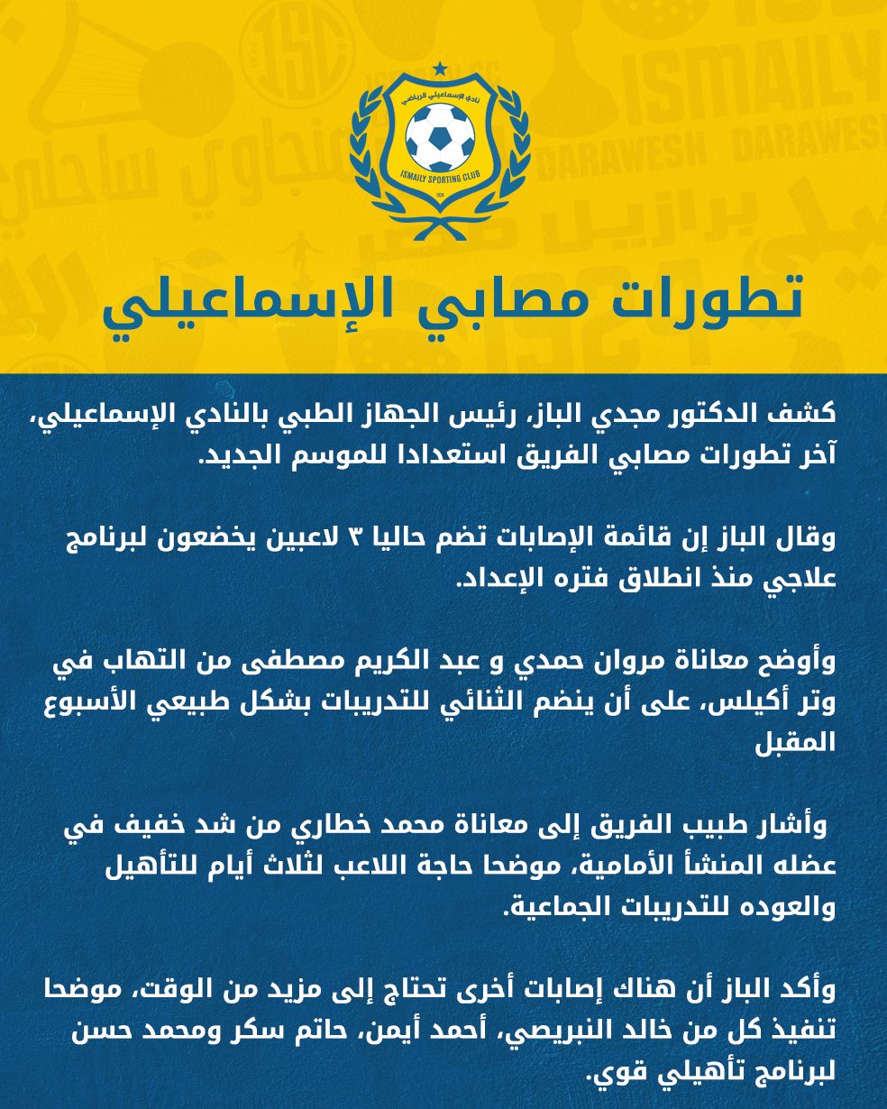 الإسماعيلي يكشف آخر مستجدات إصابات لاعبيه قبل انطلاق الموسم الجديد