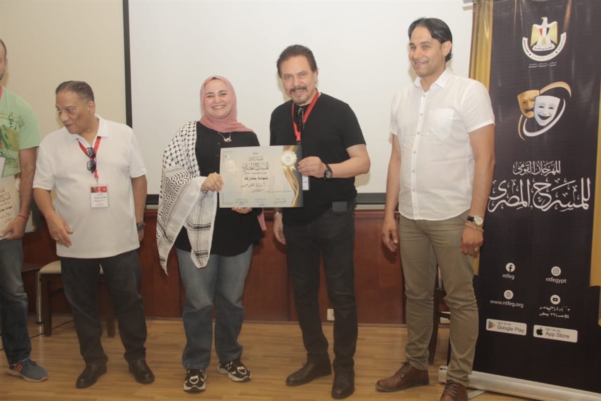 و حضر ختام الورشة الفنان محمد رياض رئيس المهرجان، والمخرج د.عادل عبده مدير المهرجان، حيث حرصا على توزيع شهادات علي المشاركين في الورشة وتسليمهم شهادات المشاركة، تعبيرًا عن دعم المهرجان الدائم لتنمية مهارات الشباب وصناع المسرح في مختلف تخصصاتهم.
