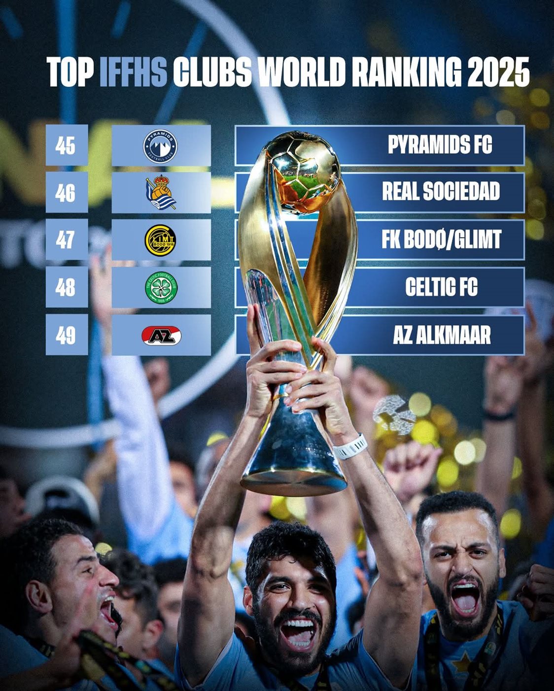 وتصدر فريق بيراميدز بطل دوري أبطال إفريقيا تصنيف الأندية العربية والإفريقية الصادر عن الاتحاد الدولي للتأريخ والإحصاء متفوقا علي الاهلي والزمالك.