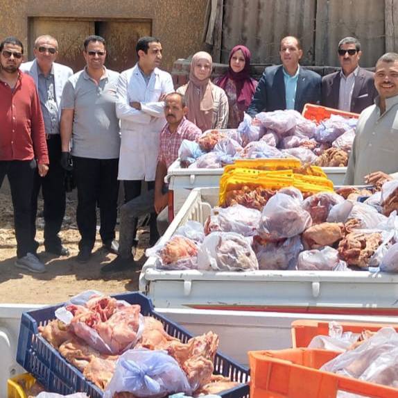 وأسفرت الحملة عن ضبط مجزر فراخ غير مرخص بدائرة قسم أول سوهاج بها عدد ٣٢١٠ كيلو فراخ وكبدة وقوانص وهياكل فراخ وأجنحة فراخ بإجمالي ٣ أطنان .