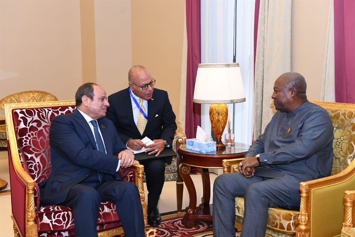 كما التقى الرئيس عبد الفتاح السيسي اليوم بالرئيس الغاني "جون ماهاما" وصرح المتحدث الرسمي باسم رئاسة الجمهورية بأن اللقاء تناول سبل تعزيز العلاقات بين البلدين الشقيقين، بما يحقق مصالحهما في مختلف القطاعات محل الاهتمام المشترك، ويستجيب لتطلعات الشعبين الشقيقين في التنمية والازدهار، خاصةً في ظل الروابط التاريخية التي تجمع البلدين.