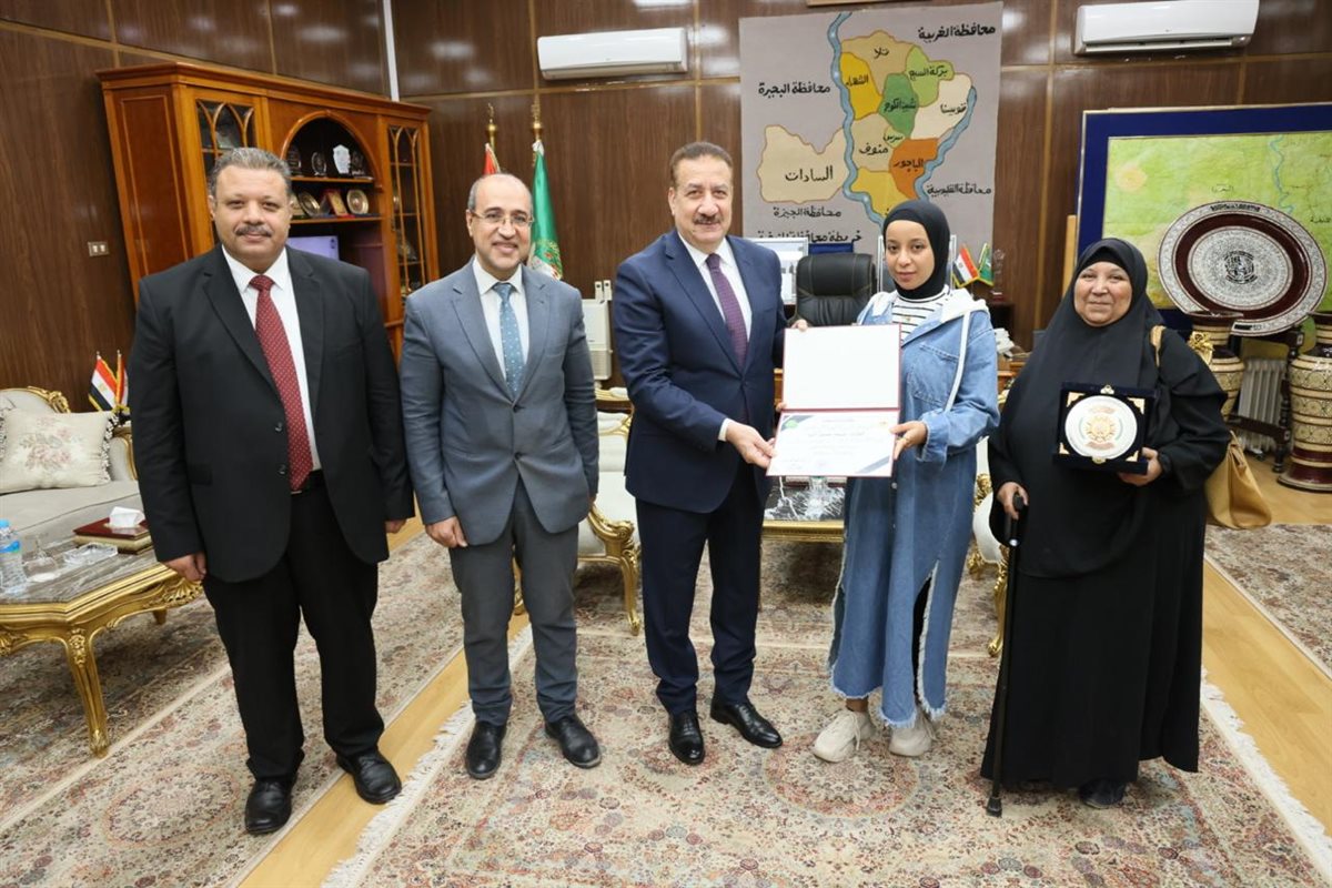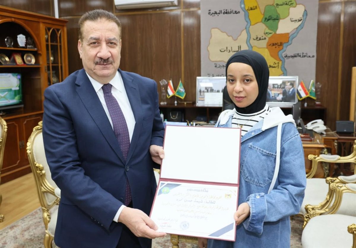 محافظ المنوفية يهدى الطالبة درع المحافظة ومكافأة مالية