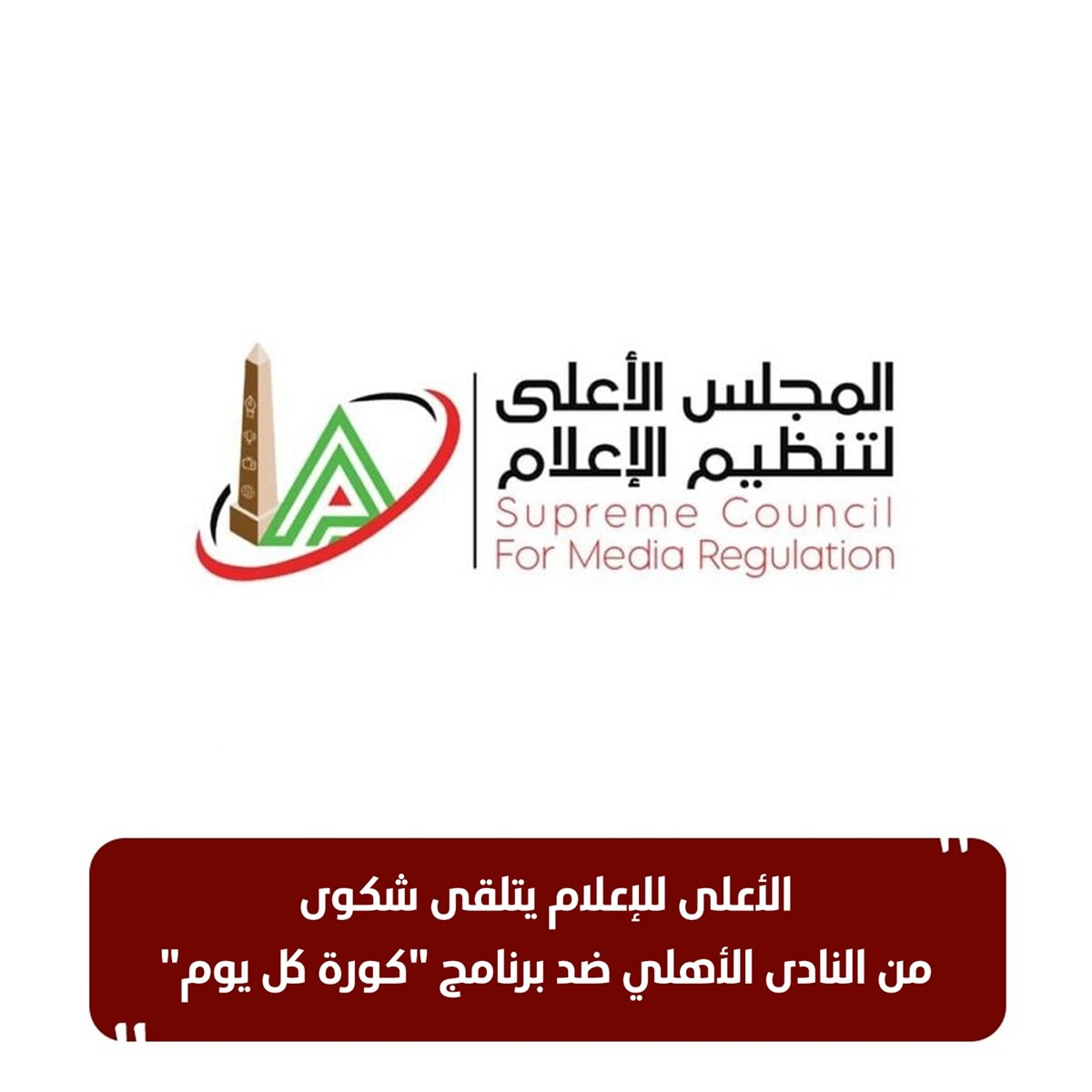 أعلن المجلس الاعلي لتنظيم الإعلام تلقيه شكوى من النادى الأهلي ضد برنامج "كورة كل يوم".