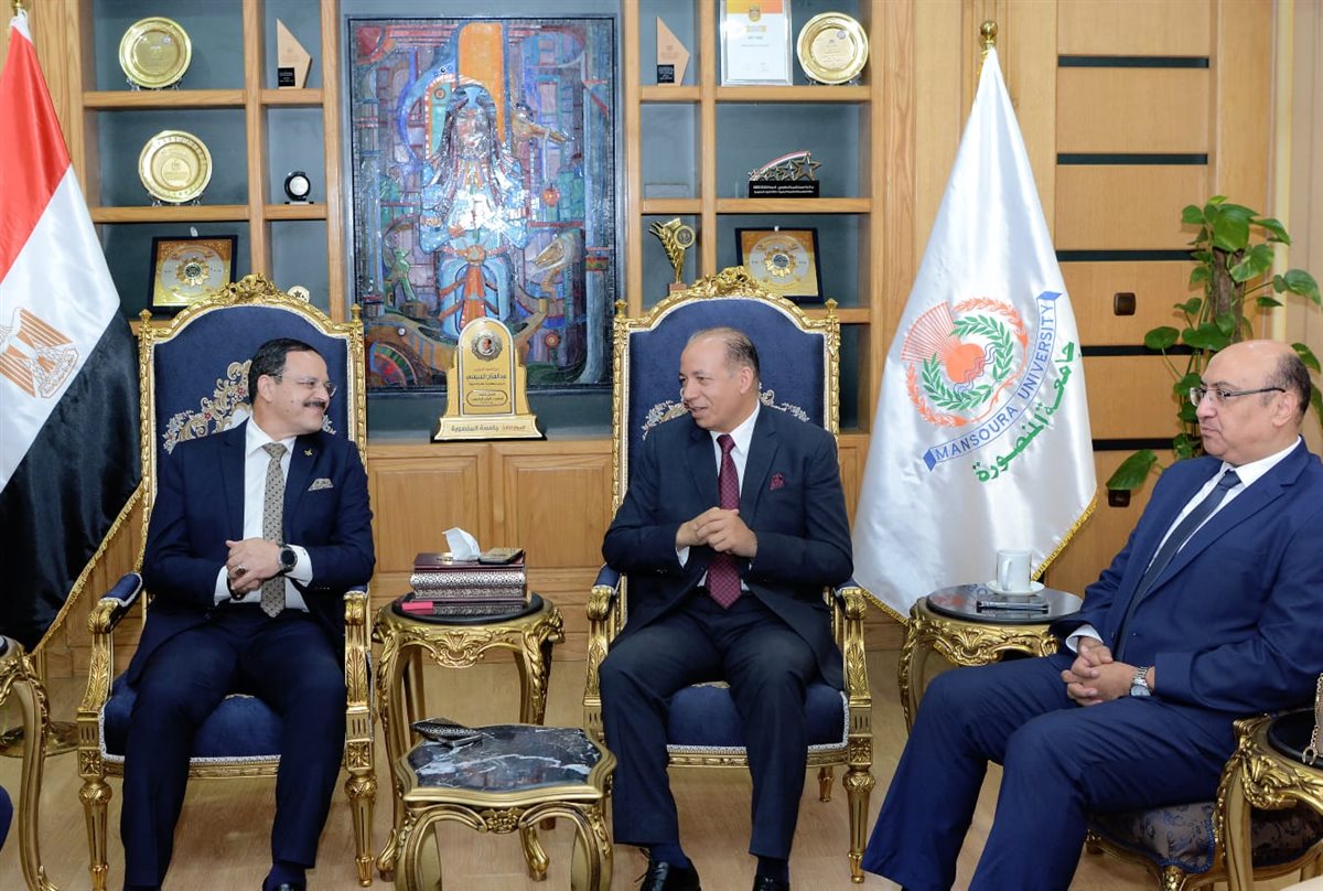 حيث استقبل الدكتور شريف خاطر، رئيس جامعة المنصورة، بمكتبه، اللواء أركان حرب حافظ محمود حسن، مساعد وزير التجارة والصناعة، ومساعد رئيس هيئة عمليات القوات المسلحة الأسبق، وذلك خلال زيارته لجامعة المنصورة للمشاركة في الندوة التوعوية التي أُقيمت بكلية التمريض تحت عنوان: "أمن مصر القومي"، والمنعقدة ضمن فعاليات مبادرة المجلس القومي للمرأة "معًا بالوعي نحميها".