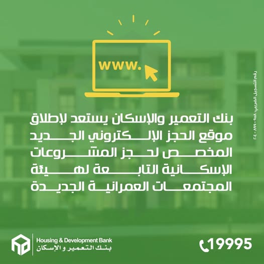 يستعد بنك التعمير والإسكان لإطلاق الموقع الإلكتروني الجديد المتخصص في الحجز الإلكتروني للمشروعات الإسكانية التابعة لهيئة المجتمعات العمرانية الجديدة، في إطار خطة بنك التعمير والإسكان الاستراتيجية لتطوير الخدمات الإسكانية، وبالتعاون المستمر والمثمر مع وزارة الإسكان والمرافق والمجتمعات العمرانية.