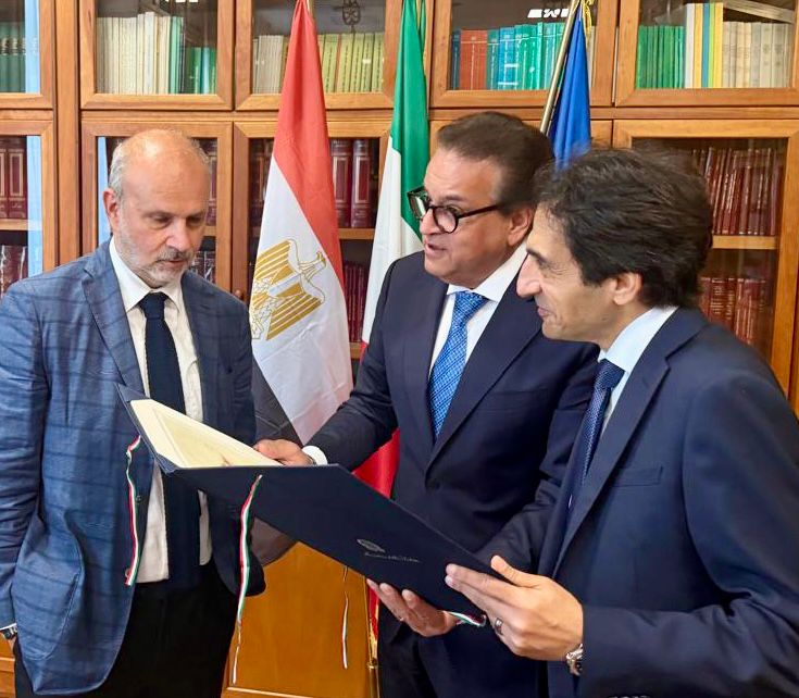 وأضاف «عبد الغفار» أن الاجتماع تضمن استعراض التعاون مع مركز «Gemelli IRCCS» الإيطالي المتميز في العلاج الإشعاعي للأورام وزراعة الأعضاء، ومستشفى «بيمبينو جيزو» لعلاج أورام الأطفال، بالإضافة إلى مناقشة تعزيز التعاون في الصناعات الدوائية، وتصدير المنتجات الطبية بالتنسيق مع هيئة الدواء المصرية، والاستفادة من الخبرات الإيطالية في إنتاج أدوية الأمراض النادرة، كما تم بحث إمكانية عقد شراكات بين الجامعات المصرية والإيطالية بالتنسيق مع وزارة التعليم العالي والبحث العلمي.