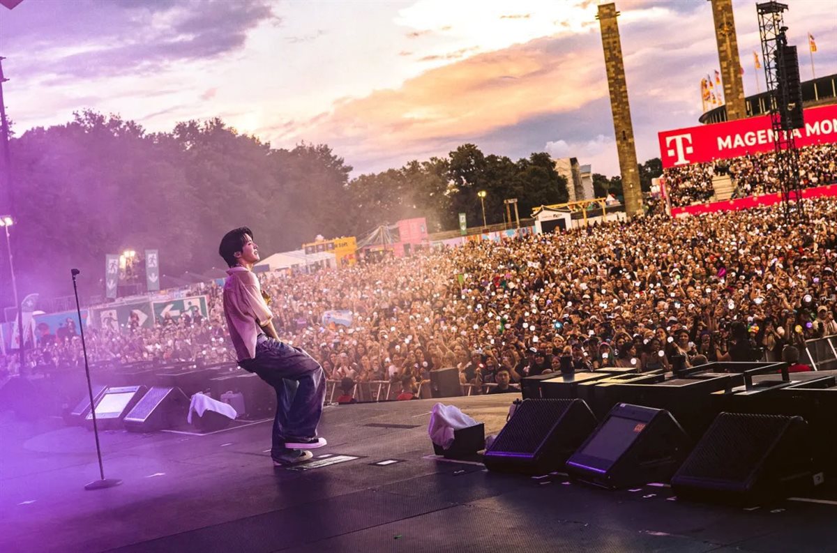 تألق نجم فرقة الكيبوب العالمية BTS، جايهوب على مسرح Lollapalooza Berlin أمام أكثر من 60 ألف متفرج، محولا الاستاد لمحيط مضيء من الآرمي (معجبي فرقة BTS).