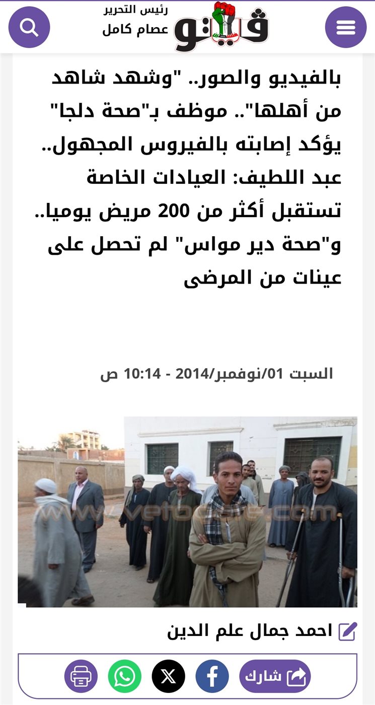 بالفيديو والصور.. "وشهد شاهد من أهلها".. موظف بـ"صحة دلجا" يؤكد إصابته بالفيروس المجهول.. عبد اللطيف: العيادات الخاصة تستقبل أكثر من 200 مريض يوميا.. و"صحة دير مواس" لم تحصل على عينات من المرضى