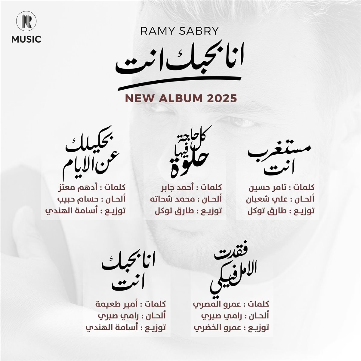 ويضم ألبوم رامي صبري الجديد 10 أغنيات متنوعة، يتعاون خلالها مع مجموعة مميزة من الشعراء والملحنين والموزعين.