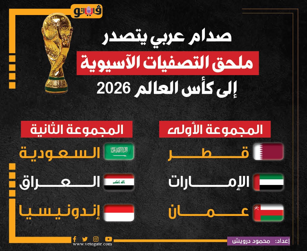 صدام عربي يتصدر ملحق التصفيات الآسيوية إلى كأس العالم 2026 (إنفوجراف)