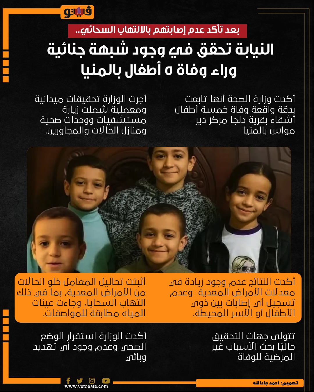 متابعة دقيقة لواقعة وفاة خمسة أطفال أشقاء من قرية دلجا بمركز دير مواس