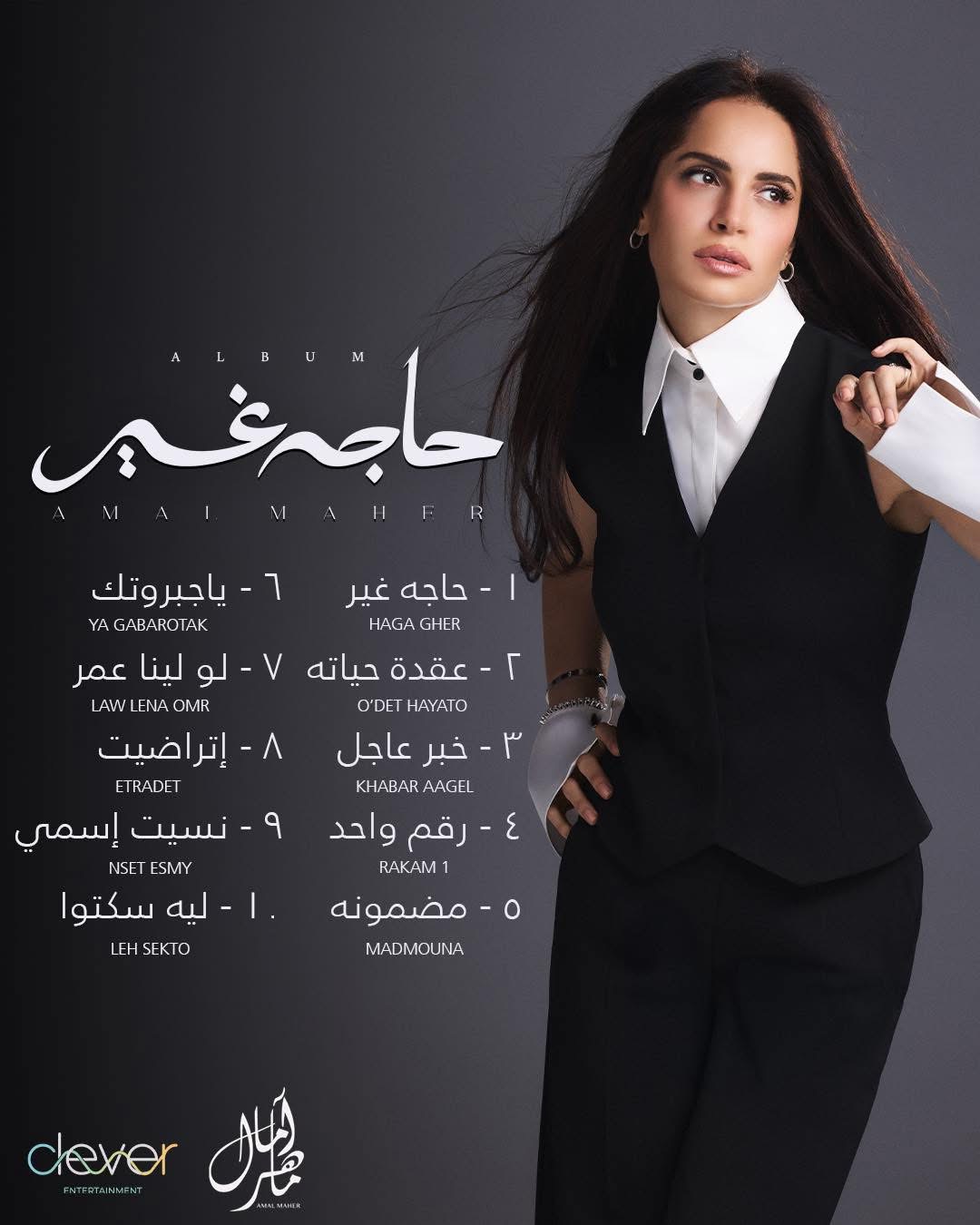 وتستعد النجمة آمال ماهر خلال الأيام المقبلة، لطرح أحدث ألبوماتها الغنائية، والتي تأتي بعنوان حاجة غير والذي يتضمن 10 أغانٍ.