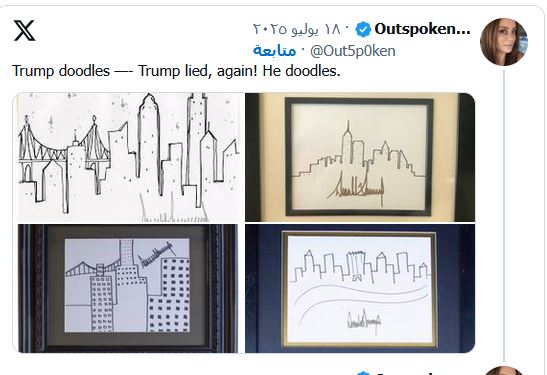 رغم تأكيد الرئيس الأمريكي دونالد ترامب أنه لا يرسم، بيع رسم منسوب له لبرج "ترامب تاور" في نيويورك بمزاد عام 2017 مقابل 30 ألف دولار.