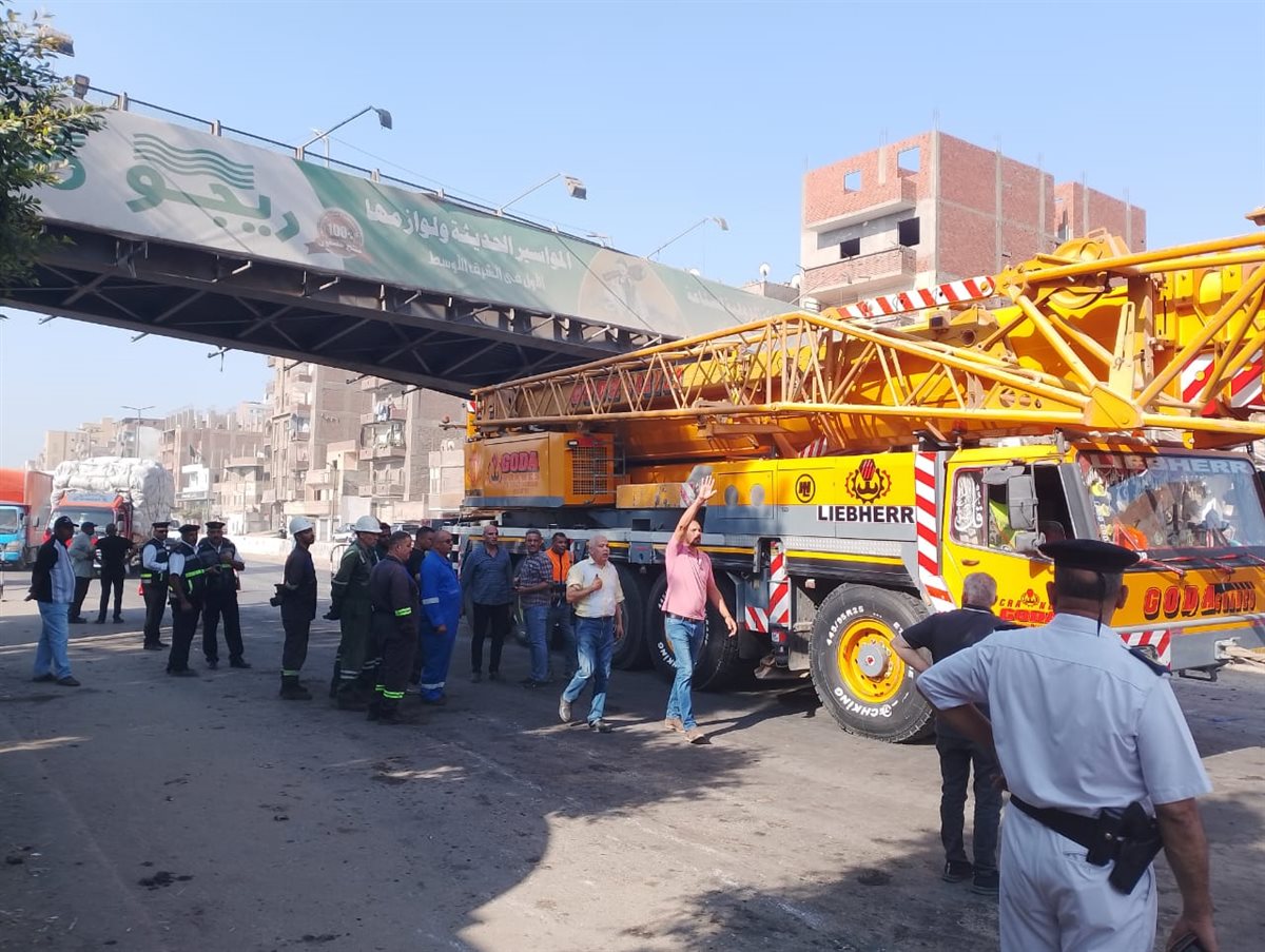 وصول أوناش عملاقة لرفع كوبري طوخ