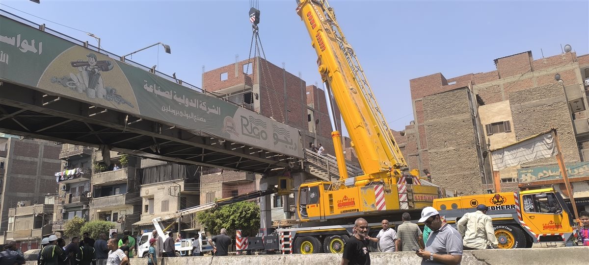 إعادة كوبري طوخ إلى مكانه وغلقه أمام المشاة لإصلاحه (صور)