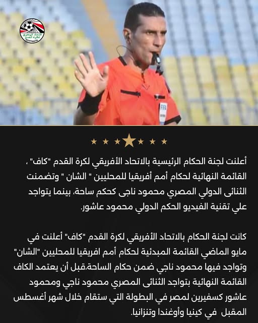 محمود ناجي وعاشور في القائمة النهائية لحكام أمم إفريقيا للمحليين