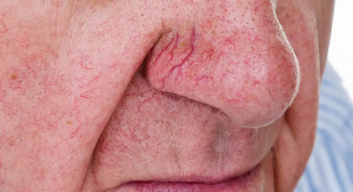 مع التقدم في العمر، تصبح الأوردة العنكبوتية، المعروفة طبيًا بتوسع الشعيرات الدموية، أكثر شيوعًا، وعلى الرغم من أنها تظهر غالبًا على الساقين، إلا أنها تبدأ بالظهورعلى الوجه، خاصة على الخدين والأنف، في تجمعات حمراء أو زرقاء أو أرجوانية تشبه شبكات العنكبوت أو أغصان الأشجار الدقيقة.