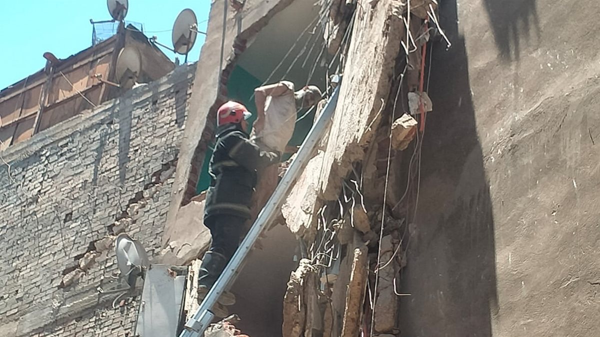 كما تم فرض كردون أمني بمحيط العقار المنهار والمكون من 3 طوابق.