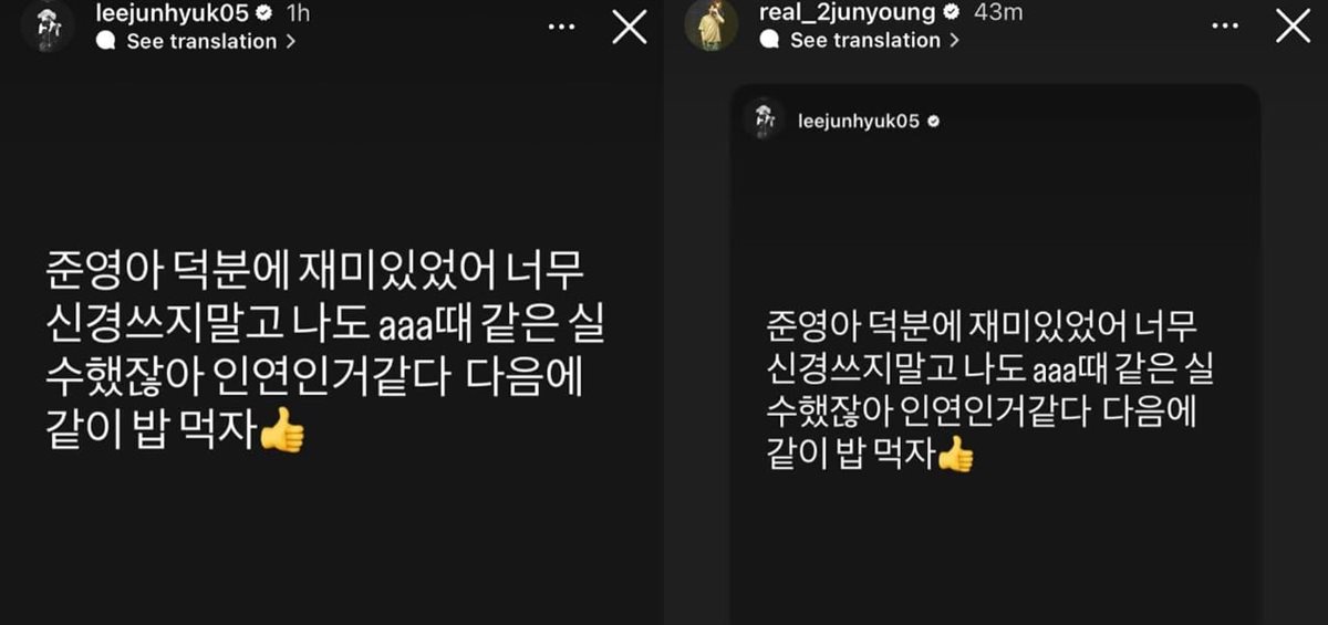 لي جون يونغ رد بدوره على رسالة لي جون هيوك، معبرًا عن امتنانه الكبير: "أعتقد أنني سأتمكن من النوم الليلة بفضل قلبك الكبير. سأبقى على اتصال معك".