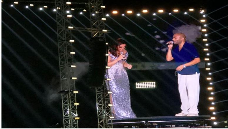 فخور إني لحنت لك، تامر عاشور يفاجئ أنغام في حفل العلمين ويشاركها دويتو "لوحة باهتة" (فيديو)