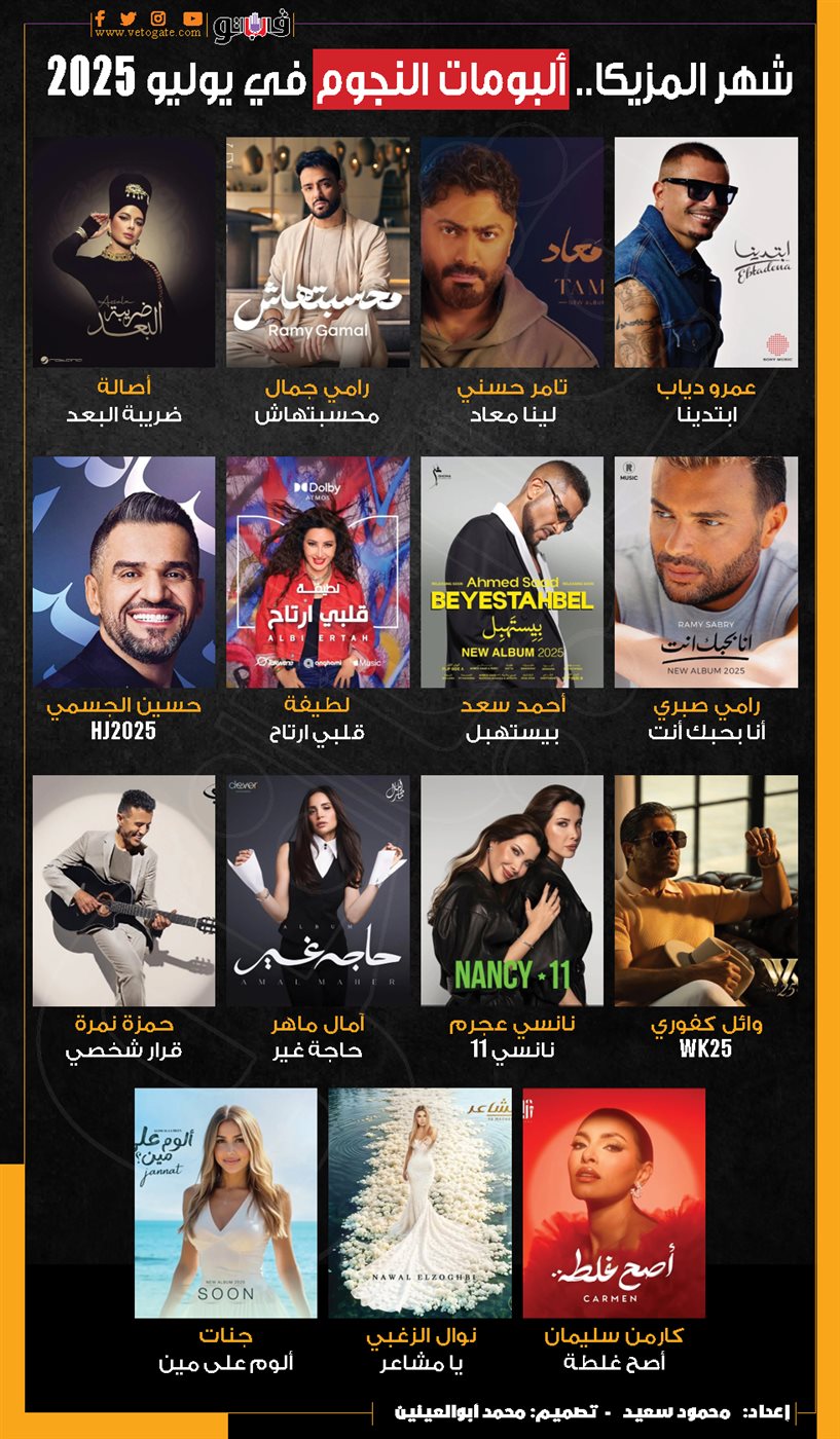 شهر المزيكا.. ألبومات النجوم في يوليو 2025 (إنفوجراف)