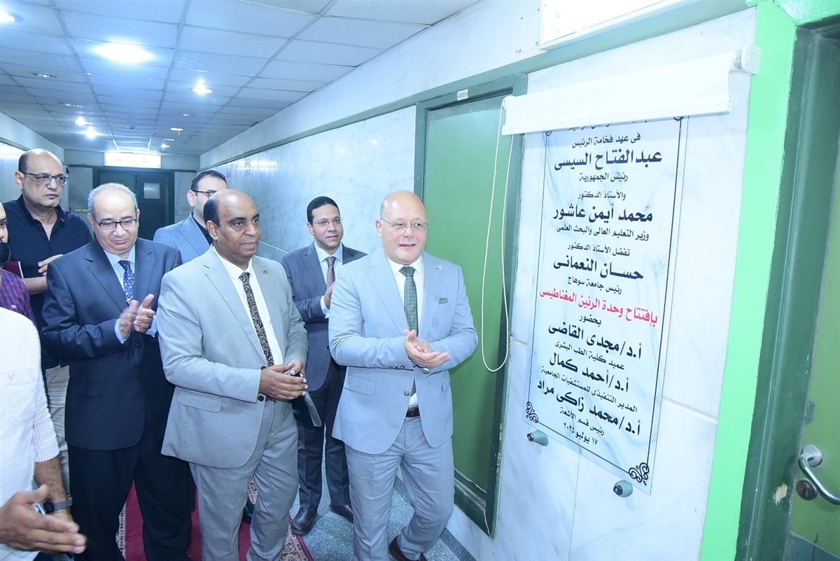 جاء ذلك بحضور الدكتور مجدي القاضي عميد كلية الطب البشري، والدكتور أحمد كمال المدير التنفيذي للمستشفيات الجامعية، والدكتور محمد زاكي رئيس قسم الأشعة، والدكتور عمرو الشريف نائب مدير المستشفى، والدكتور محمد حسن القوصي مدير وحدة الرنين المغناطيسي وعدد من أعضاء هيئة التدريس والاطباء.