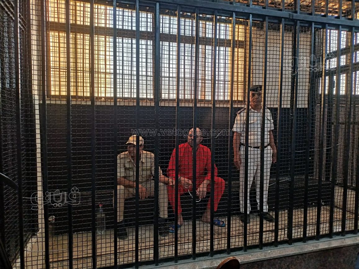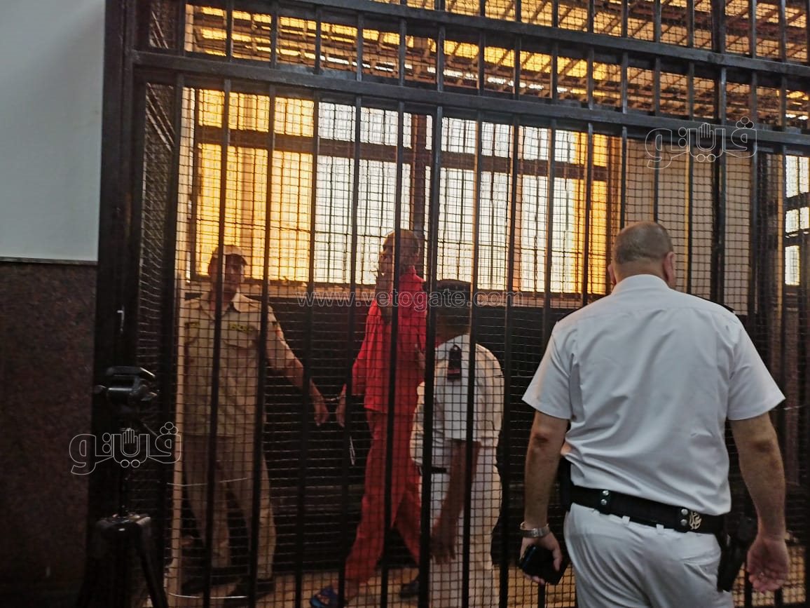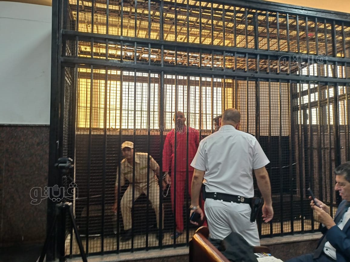 ببدلة الإعدام والسبحة، إيداع المتهم بقتل خاله حرقا قفص الاتهام بجنايات الأقصر (صور)