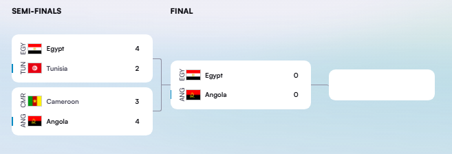 ويشهد الدور ربع النهائي مواجهات بين تونس والجزائر، والمغرب مع أنجولا.