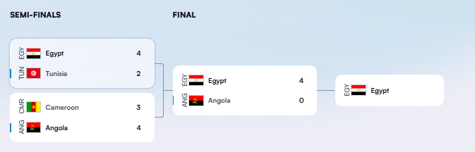 وكانت قرعة البطولة قد أسفرت عن تأهل منتخبي مصر والكاميرون مباشرة لنصف نهائي منافسات الفرق.